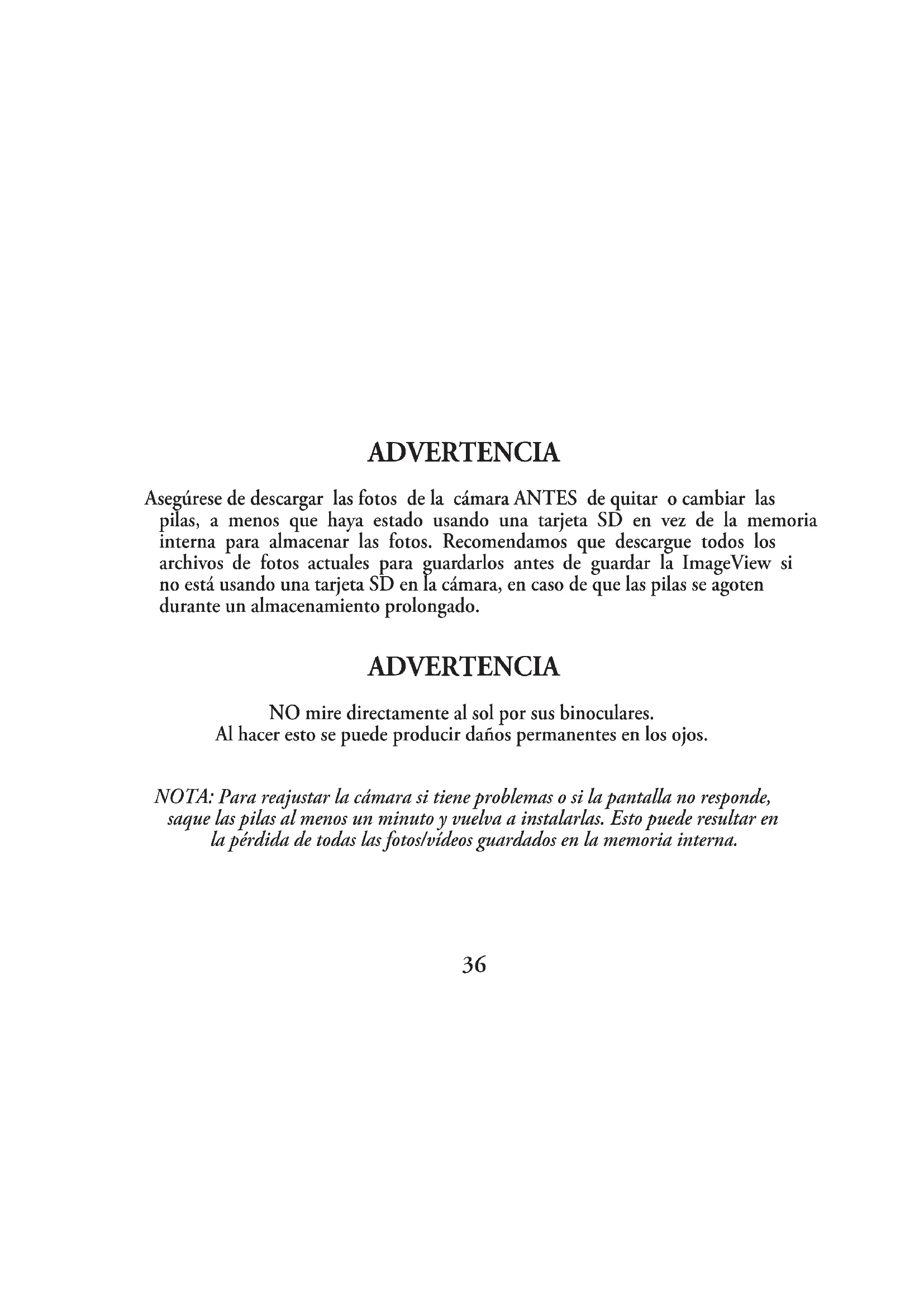 4. ADVERTENCIA: La mirada directa al sol con los binoculares puede causarle daños permanentes