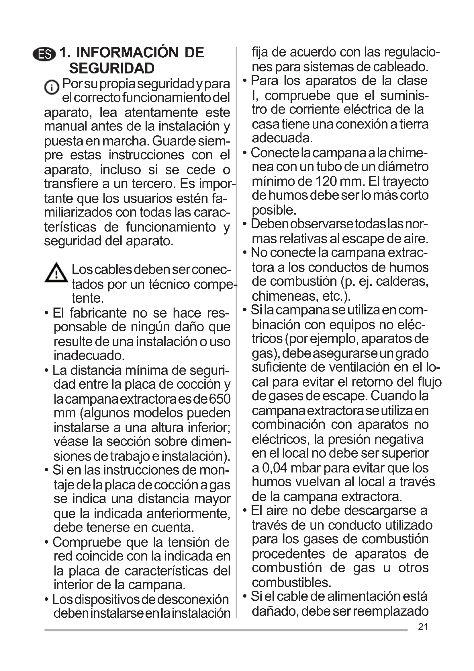 SEGURIDAD Por su propia seguridad y para el correcto funcionamiento del aparato, lea atentamente este manual antes de la instalación y puesta en marcha. Guarde siem- pre estas instrucciones con el aparato, incluso si se cede o transere a un tercero. Es impor- tante que los usuarios estén fa- miliarizados con todas las carac- terísticas de funcionamiento y seguridad del aparato. Los cables deben ser conec- tados por un técnico compe- tente.