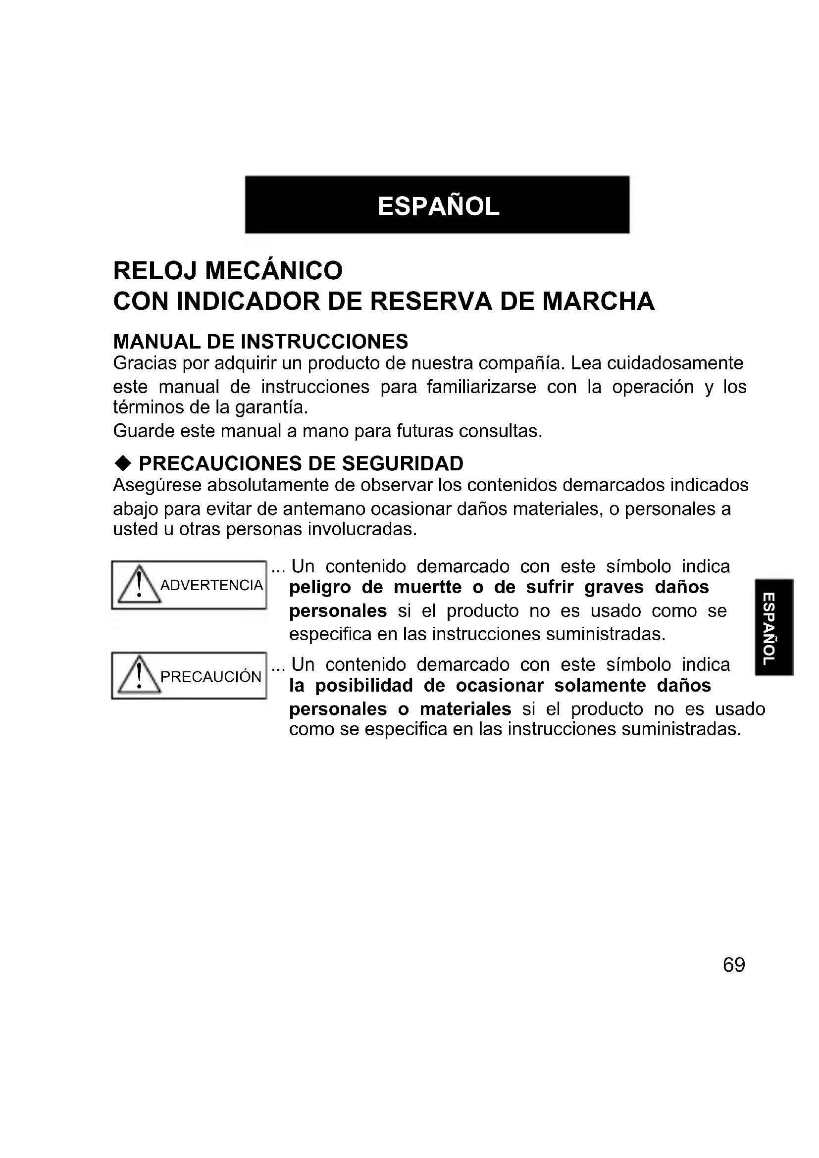 PRECAUCIÓN No intente desmontar o modificar el reloj.