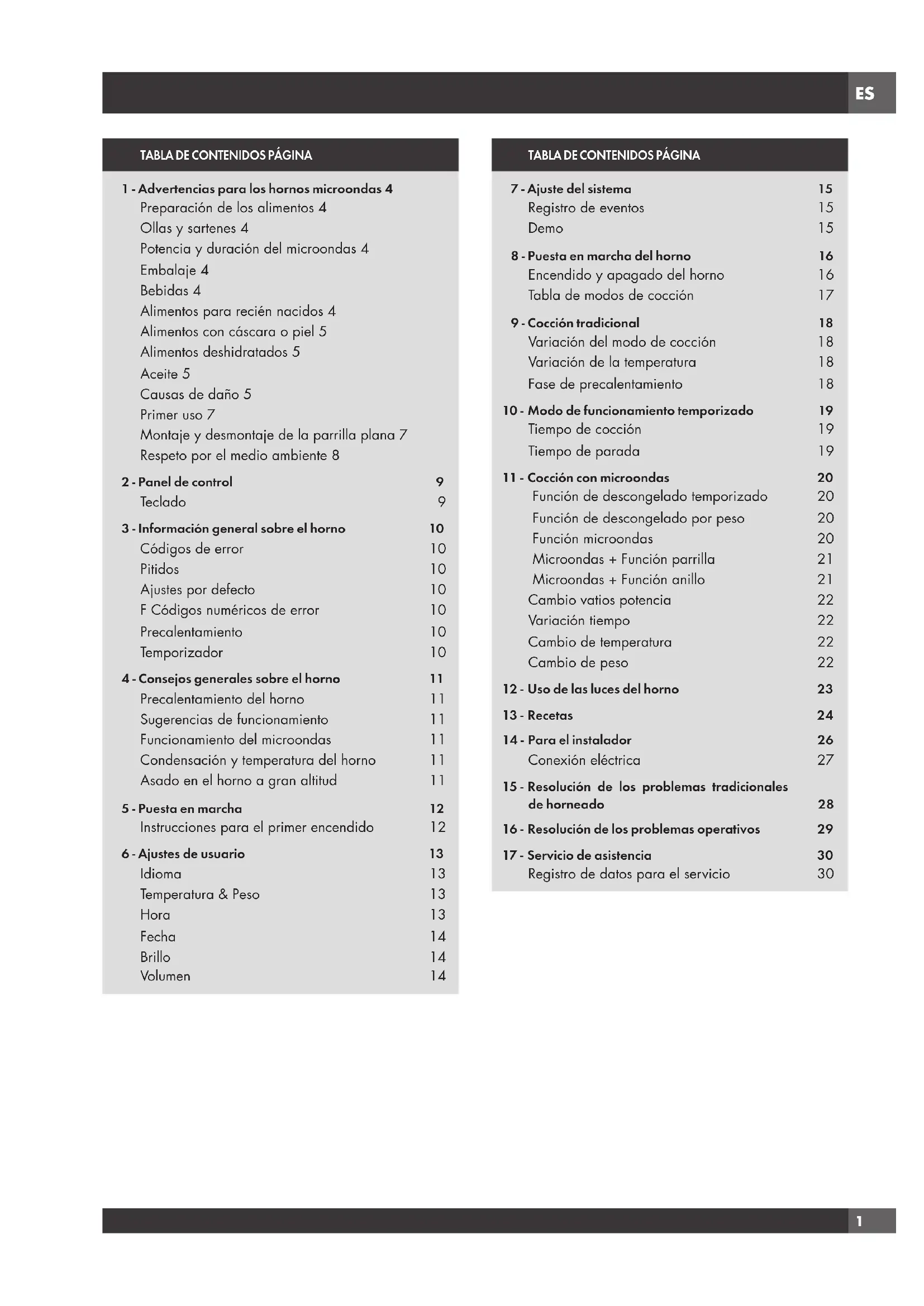 Encendido y apagado del horno 16 Tabla de modos de cocción 17