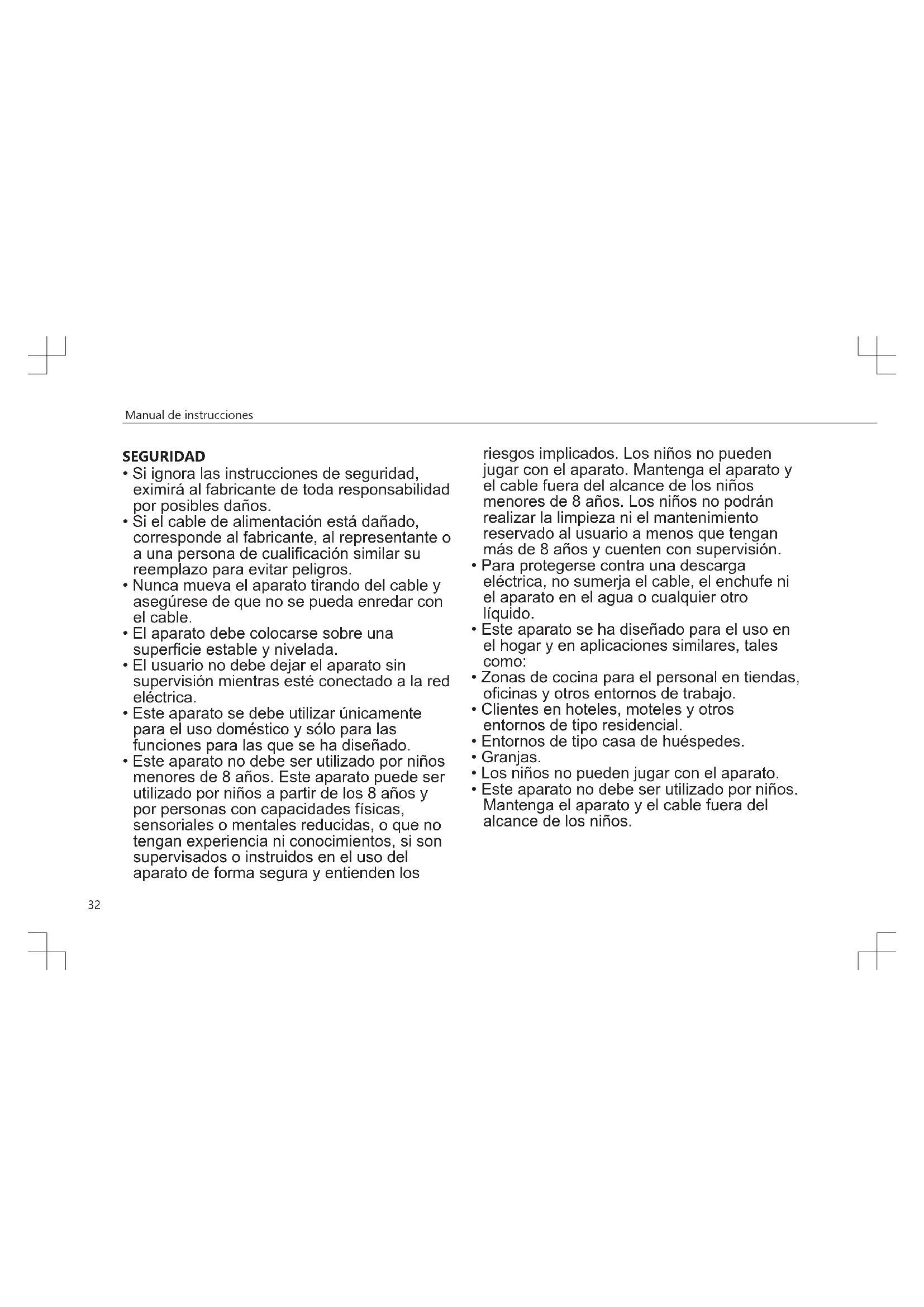 - Este aparato no debe ser utilizado por niños. Mantenga el aparato y el cable fuera del alcance de los niños.Manual de instrucciones