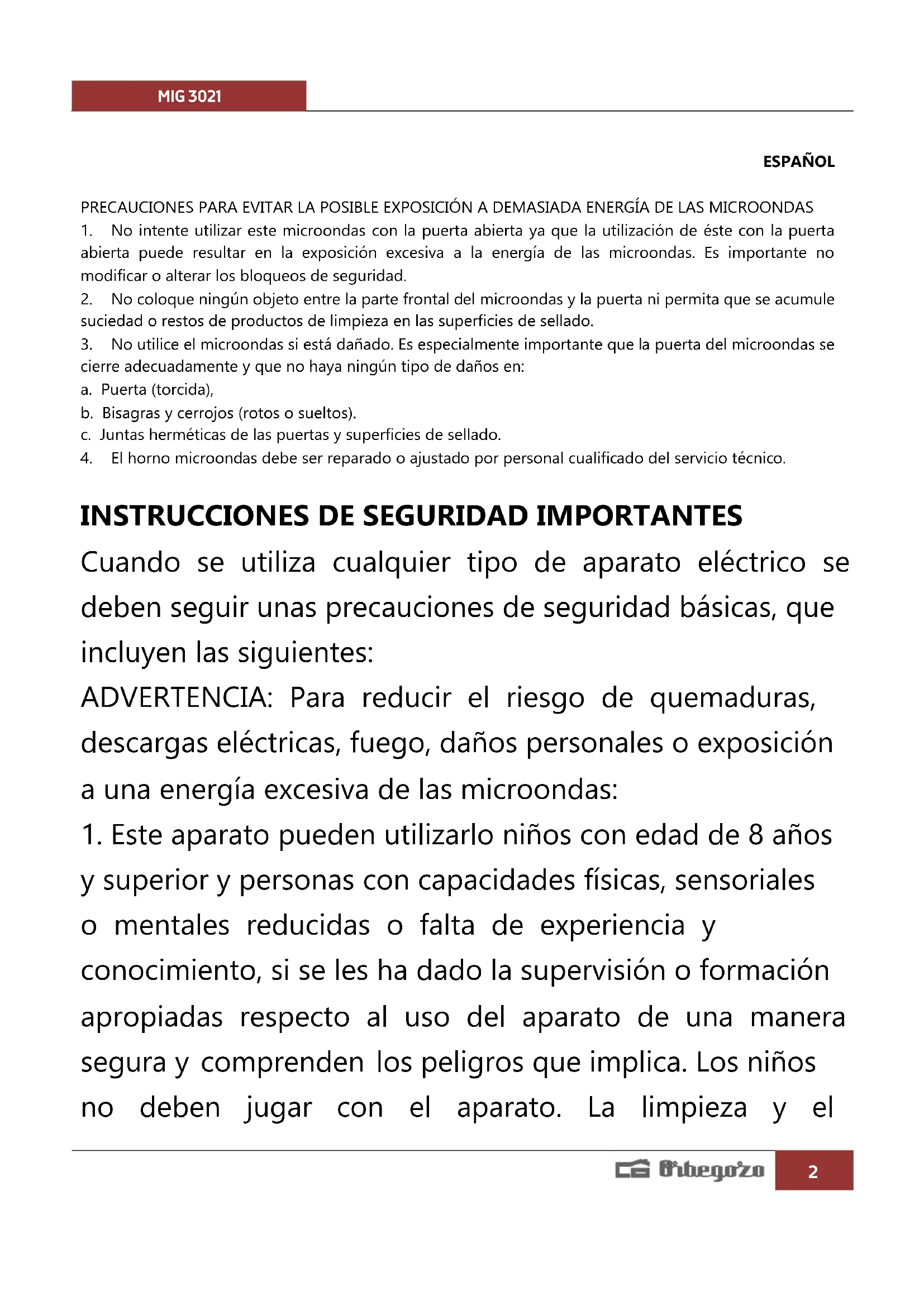 MIG 3021 - Microondas Orbegozo - Manual de uso y guía de instrucciones gratis