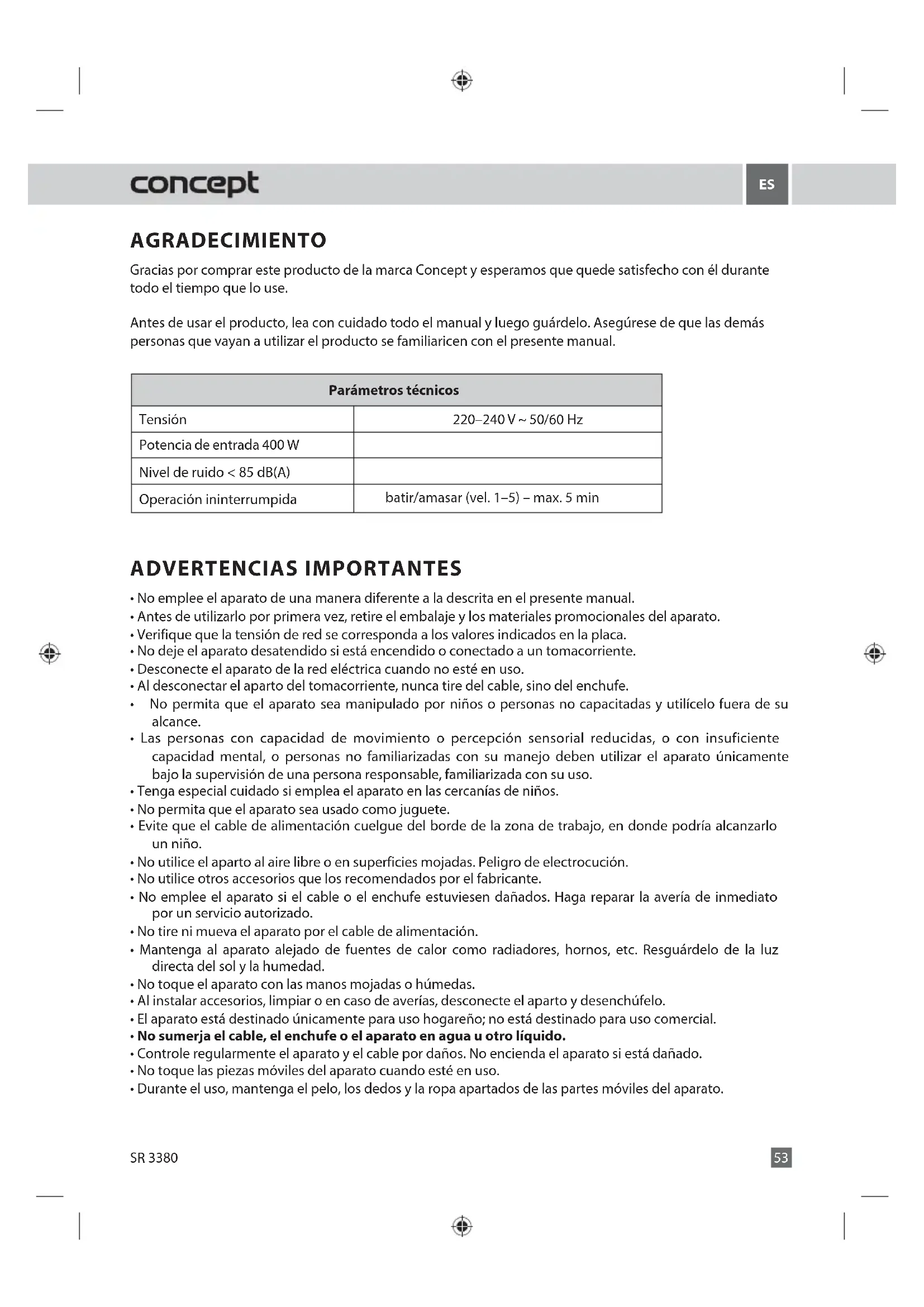 SR3380 - Batidora de mano Concept - Manual de uso y guía de instrucciones gratis