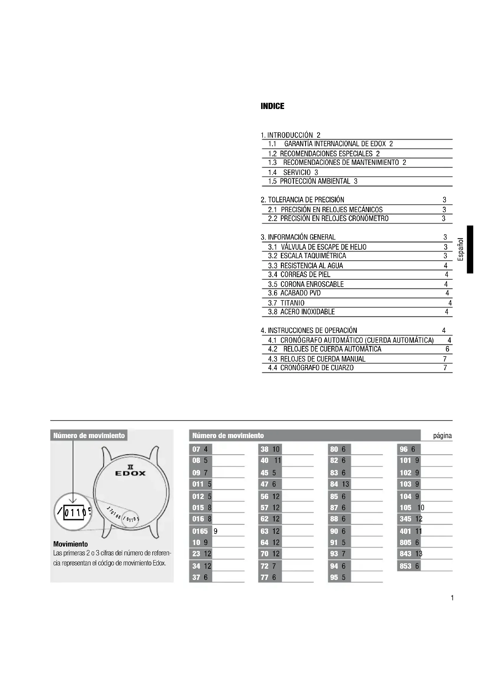 4.2 RELOJES DE CUERDA AUTOMÁTICA 64.3 RELOJES DE CUERDA MANUAL 74.4 CRONÓGRAFO DE CUARZO 7INDICENúmero de movimiento página2