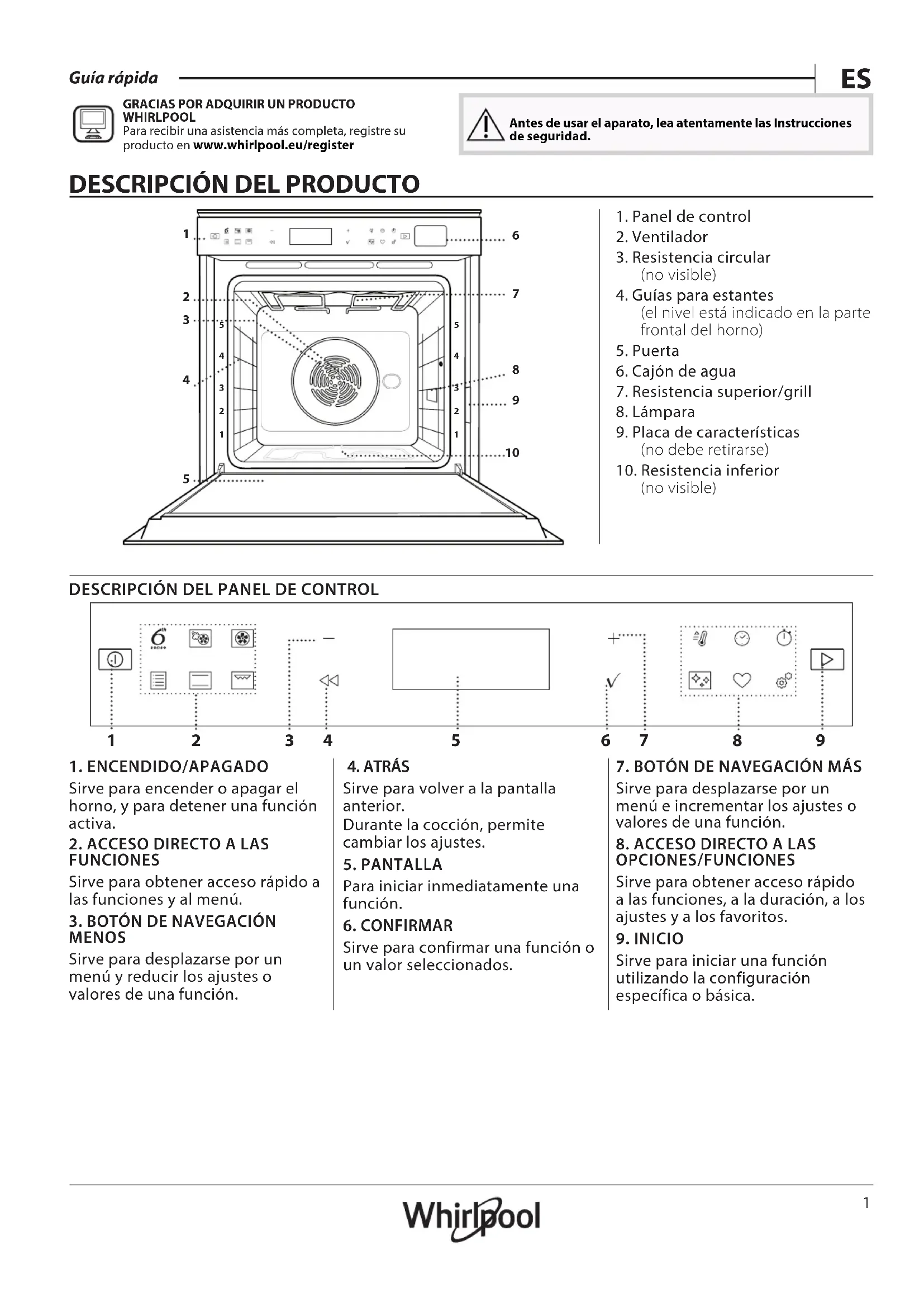 WHIRLPOOL Para recibir una asistencia más completa, registre su producto en www . whirlpool . eu/ register Antes de usar el aparato, lea atentamente las Instrucciones de seguridad.