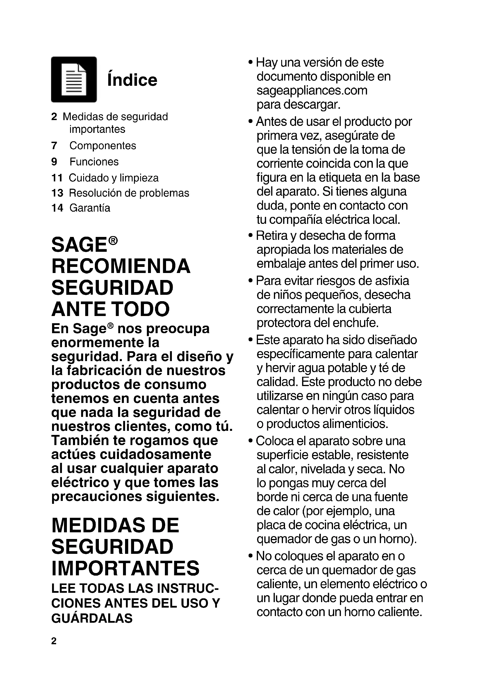 - Hay una versión de este documento disponible en sageappliances.com para descargar.