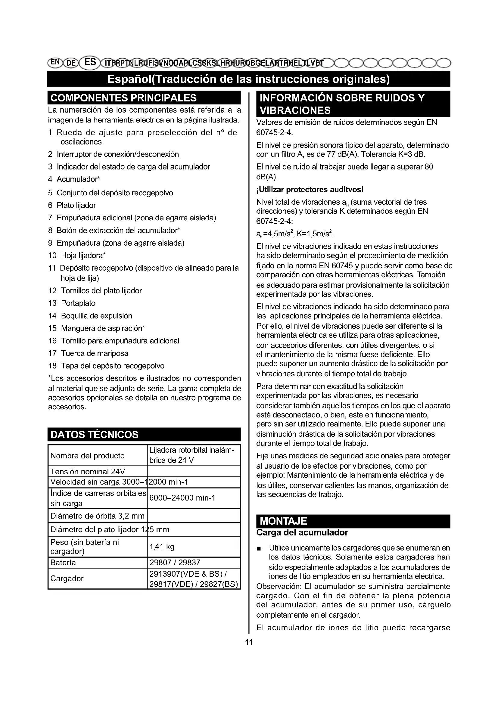 LIJADORA ROTORBITAL INALÁMBRICA DE 24 V MANUAL DE UTILIZACIÓN 11