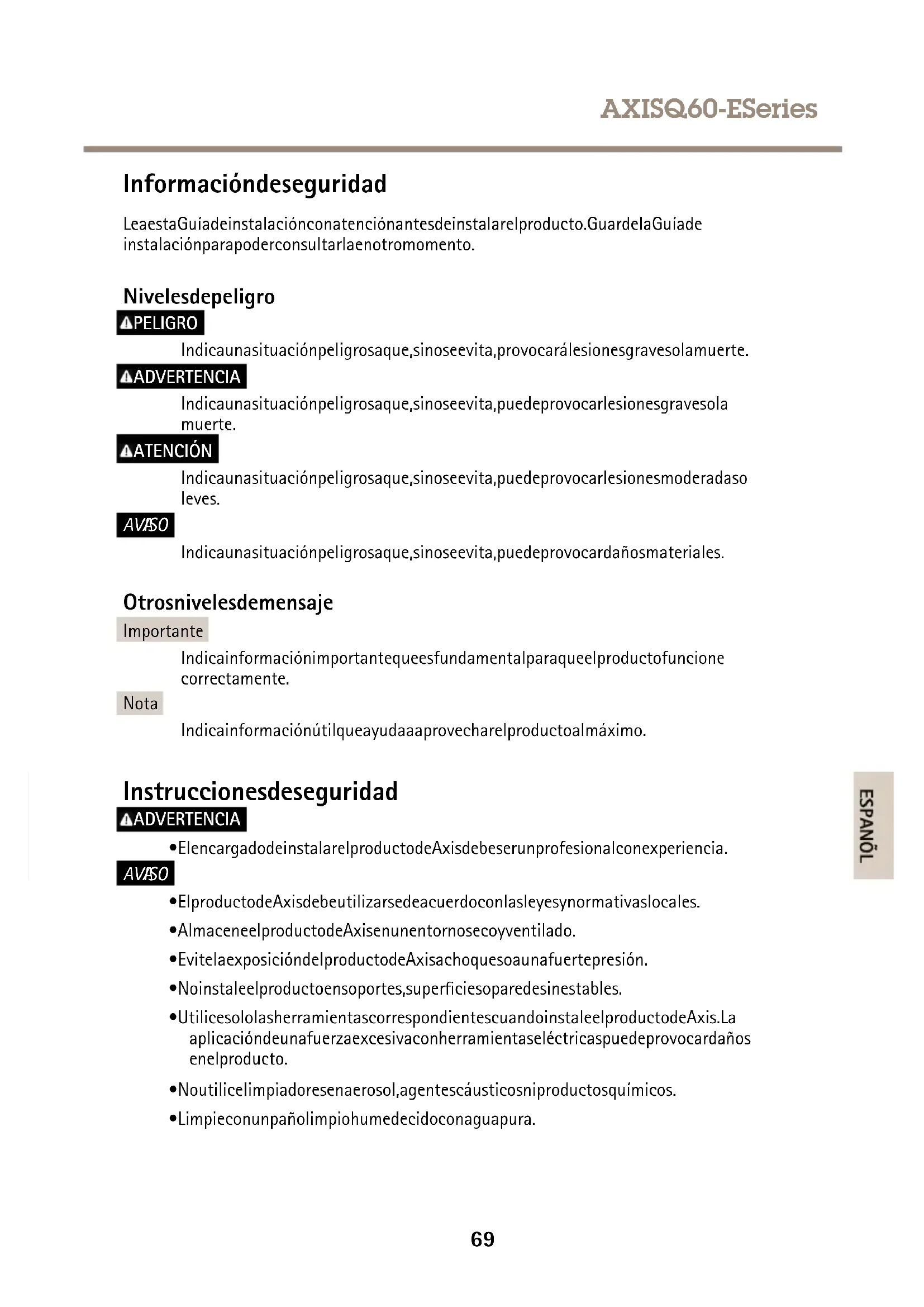 - Limpieconunpañolimpiohumedecidoconaguapura. 69AXISQ60-ESeries