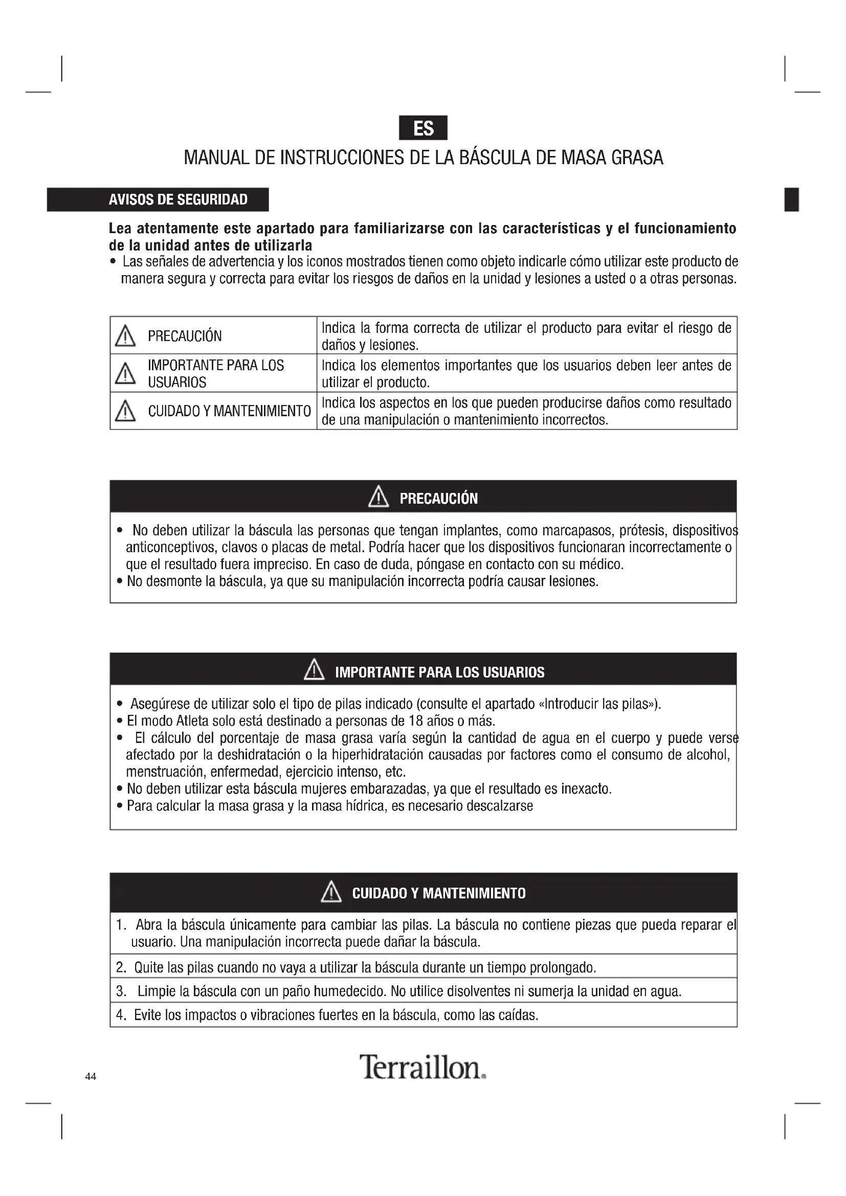 Easy Move - Balance TERRAILLON - Manual de uso y guía de instrucciones gratis