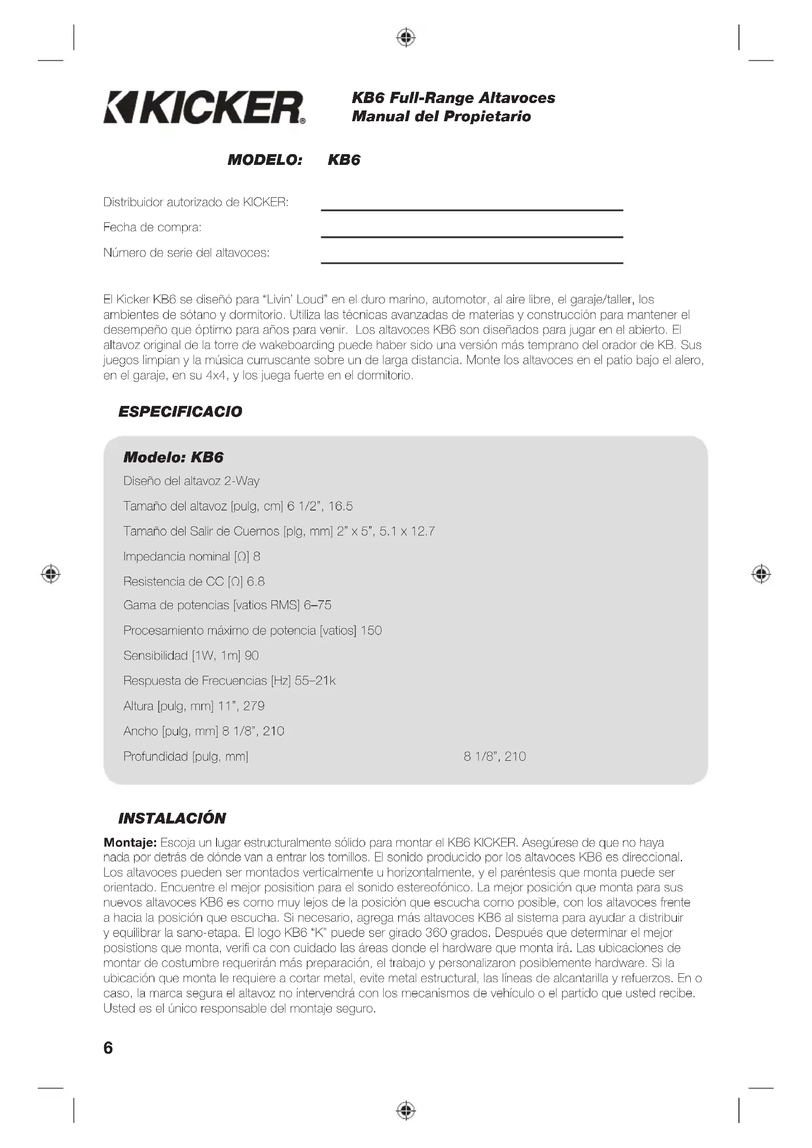 KB6 - Vocero KICKER - Manual de uso y guía de instrucciones gratis