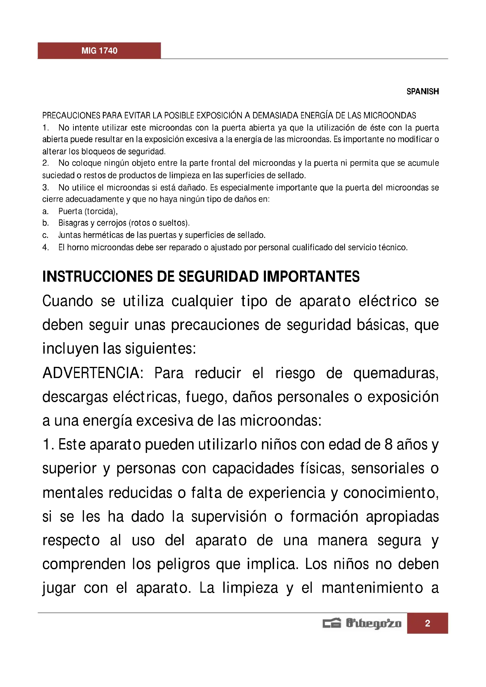 MANUAL DE USUARIO MIG 1740 Orbegozo