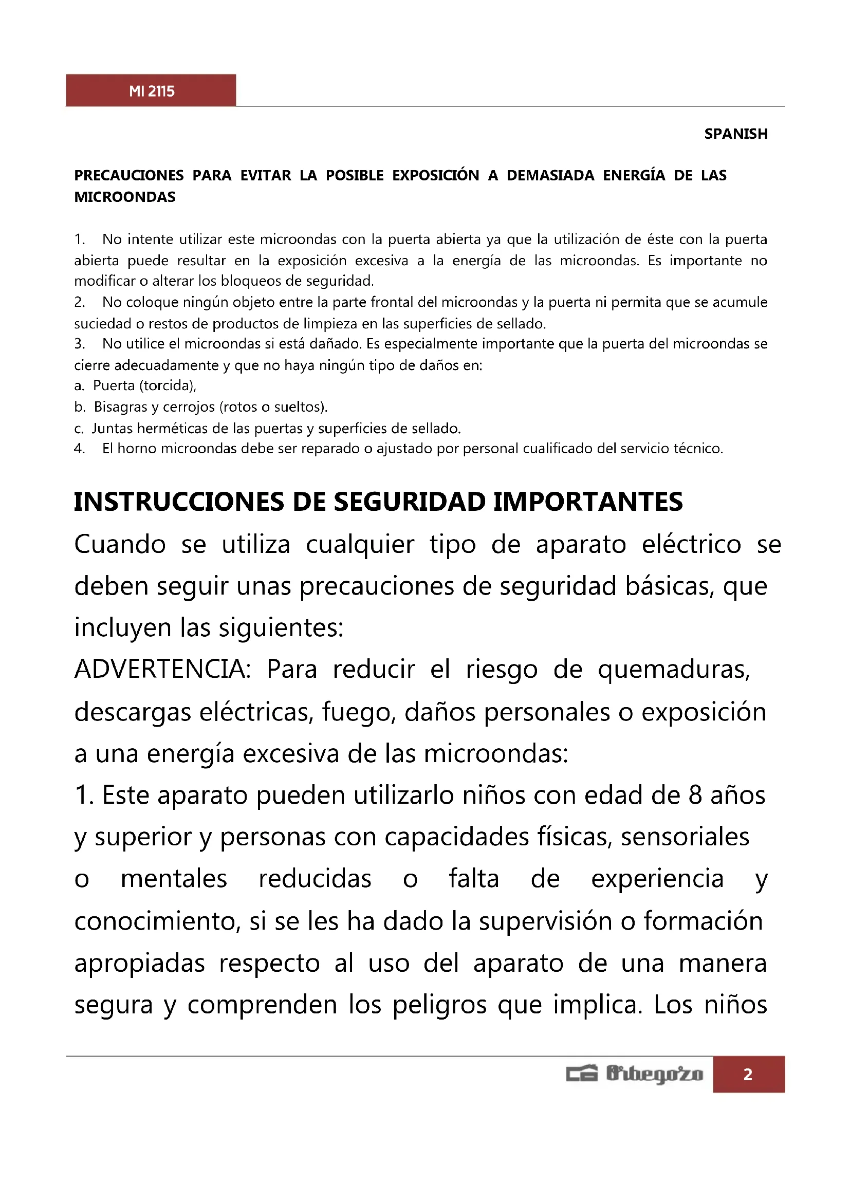 Encuentra gratis el manual del aparato MI 2115 Orbegozo en formato PDF.