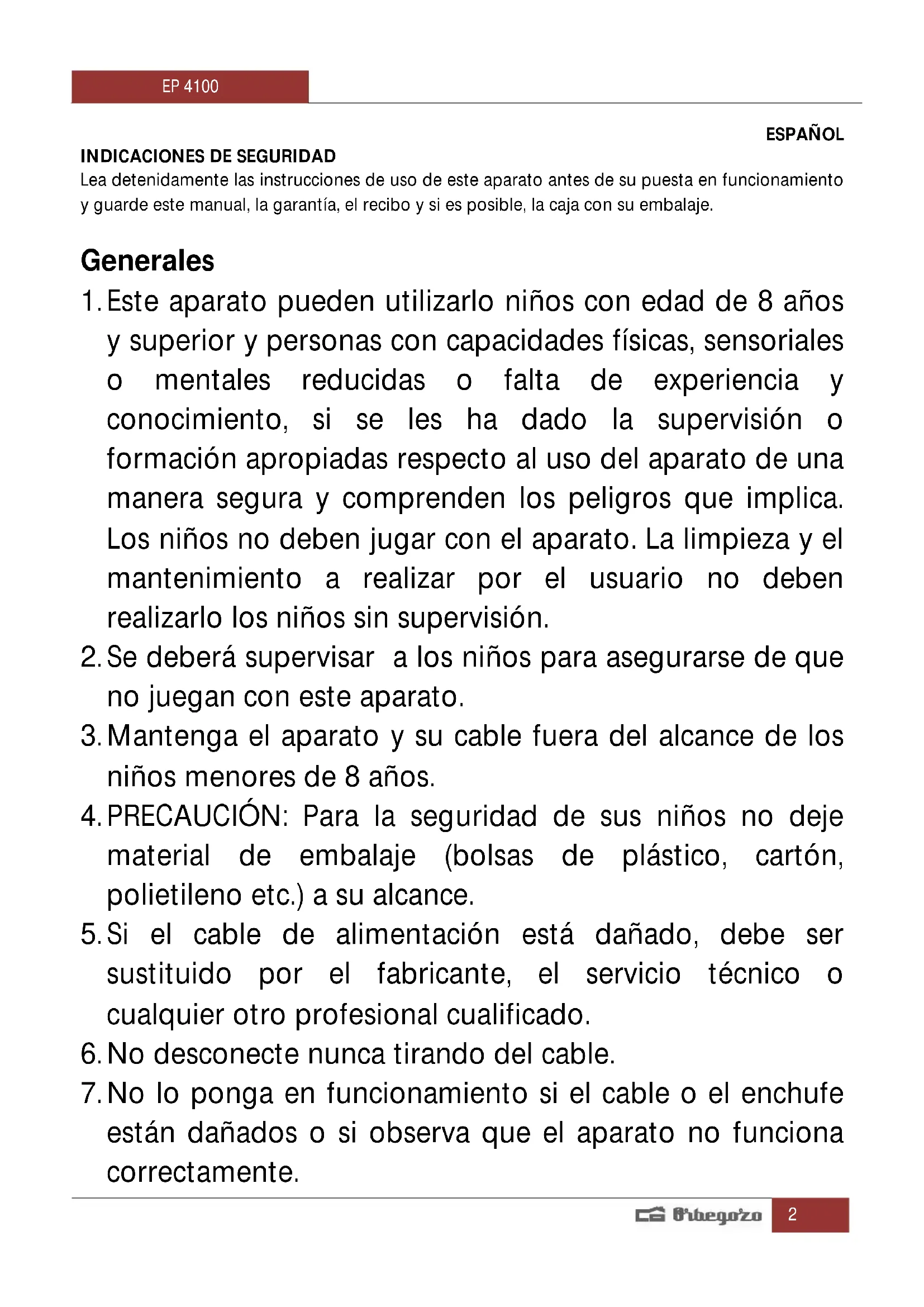 MANUAL DE USUARIO EP 4100 Orbegozo