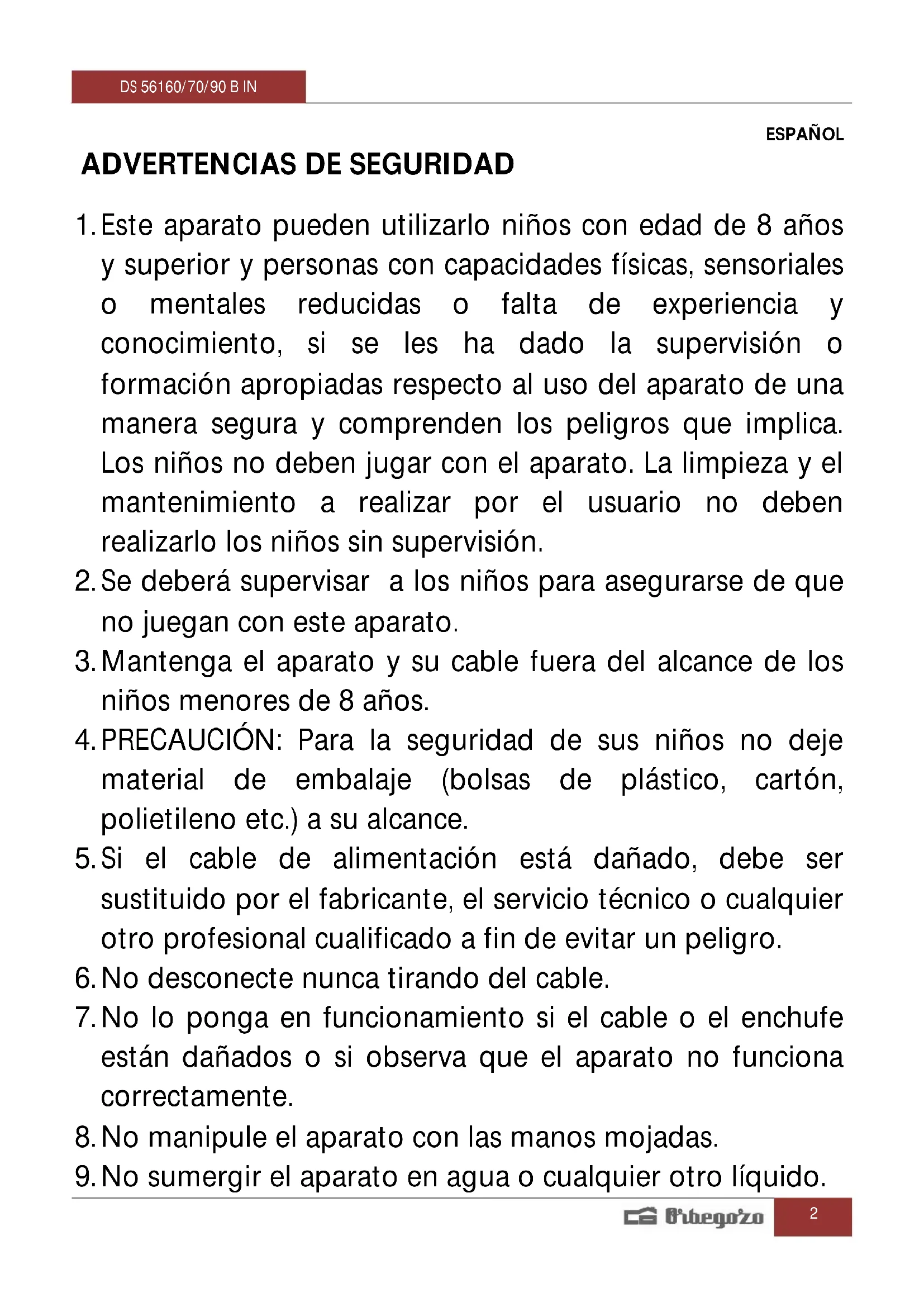 MANUAL DE USUARIO DS 56190 B IN Orbegozo