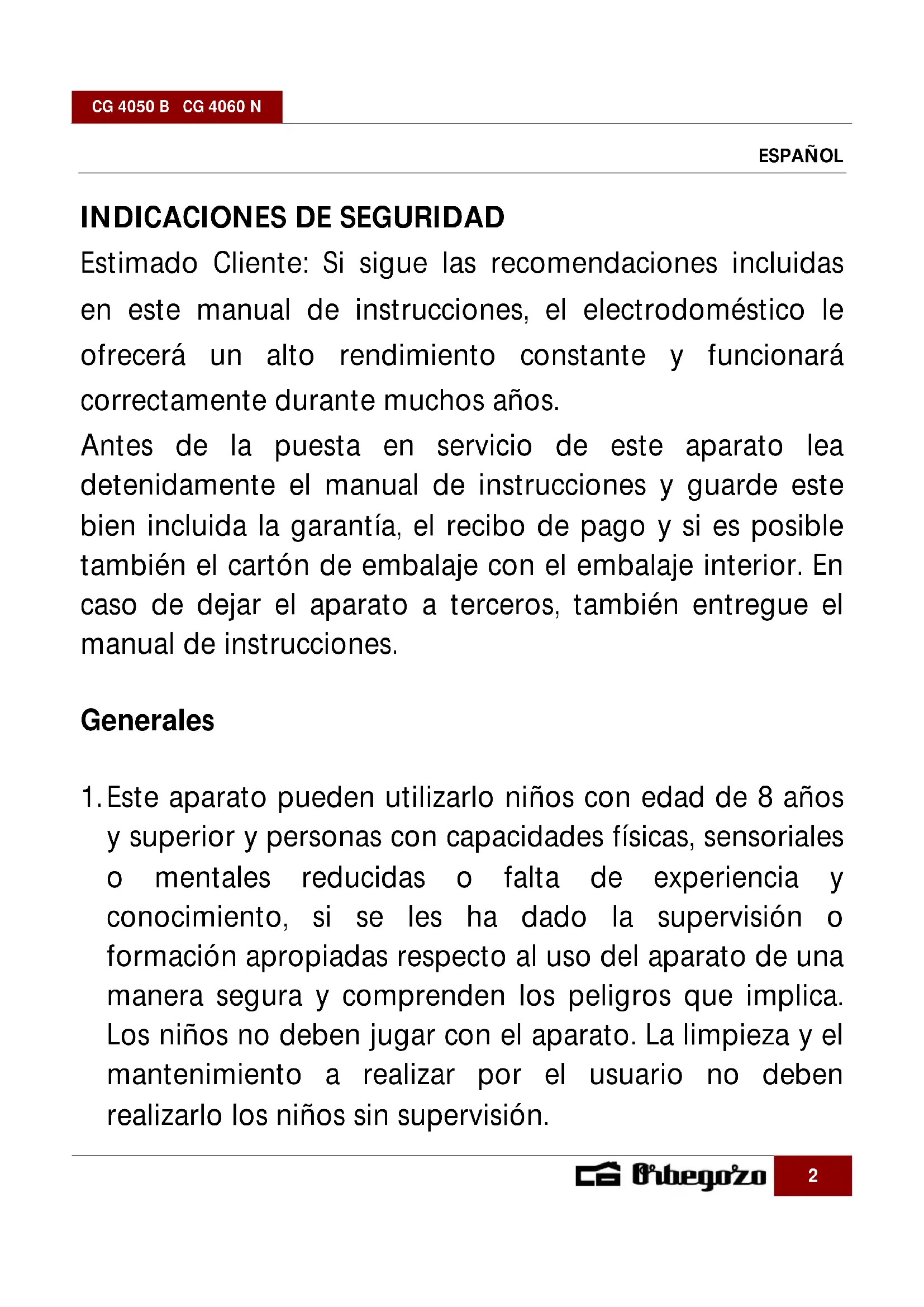MANUAL DE USUARIO CG 4060 N Orbegozo