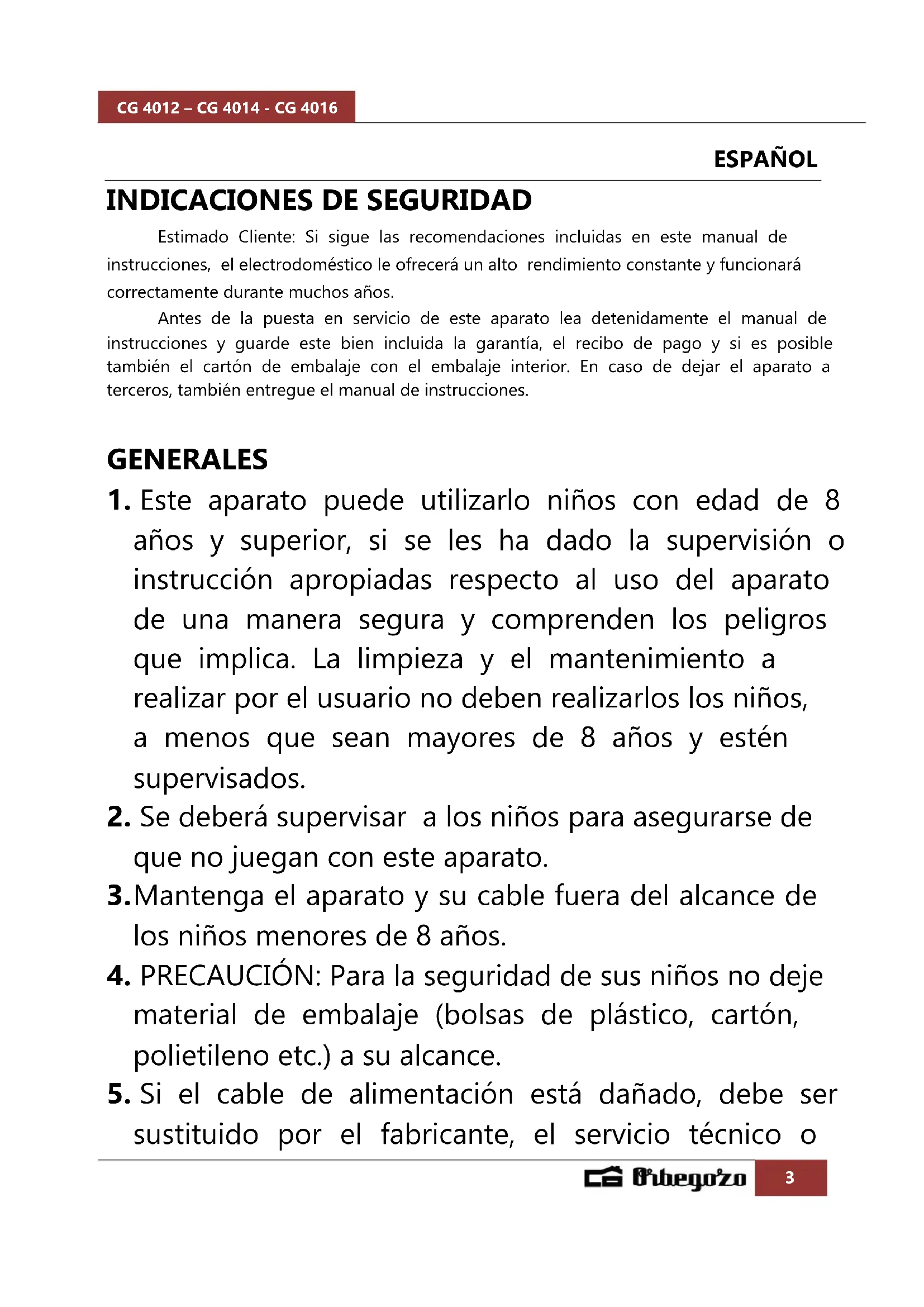 MANUAL DE USUARIO CG 4014 Orbegozo