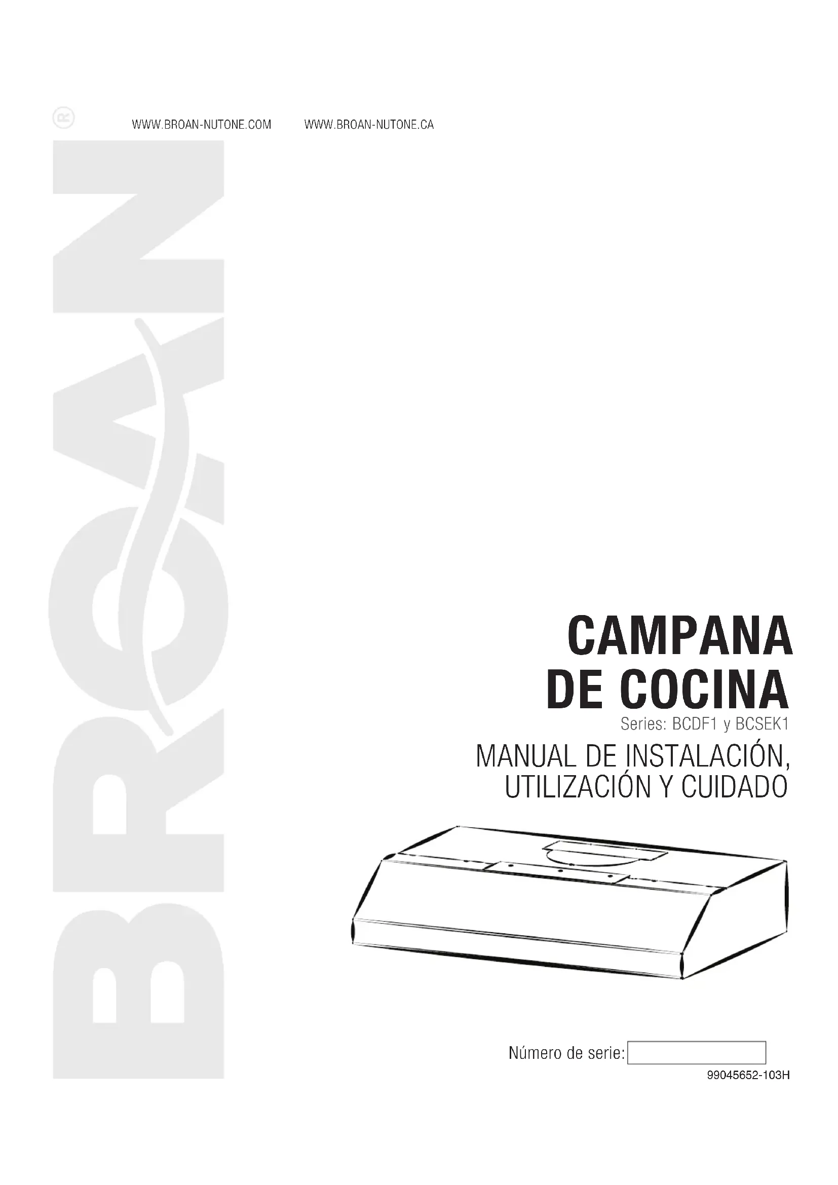 INSTALADOR: ENTREGUE ESTE MANUAL AL PROPIETARIO.En EE.UU., registre su campana de cocina en línea en www.broan-nutone.comEn Canadá, registre su campana de cocina en línea en www.broan-nutone.caMANUAL DE INSTALACIÓN SEGURIDAD