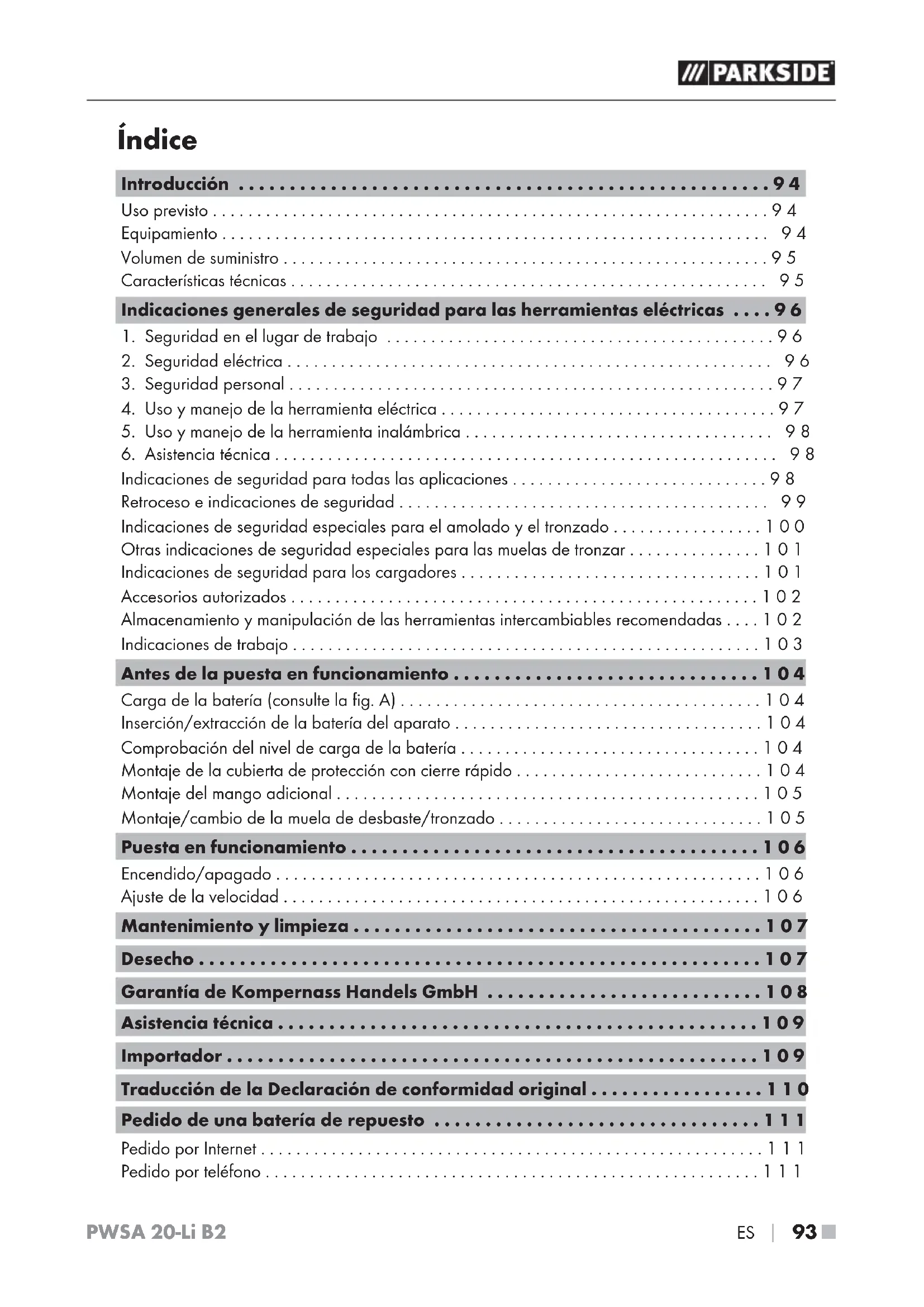 - Pedido por teléfono PWSA 20-Li B2 ■ 94 p. 111