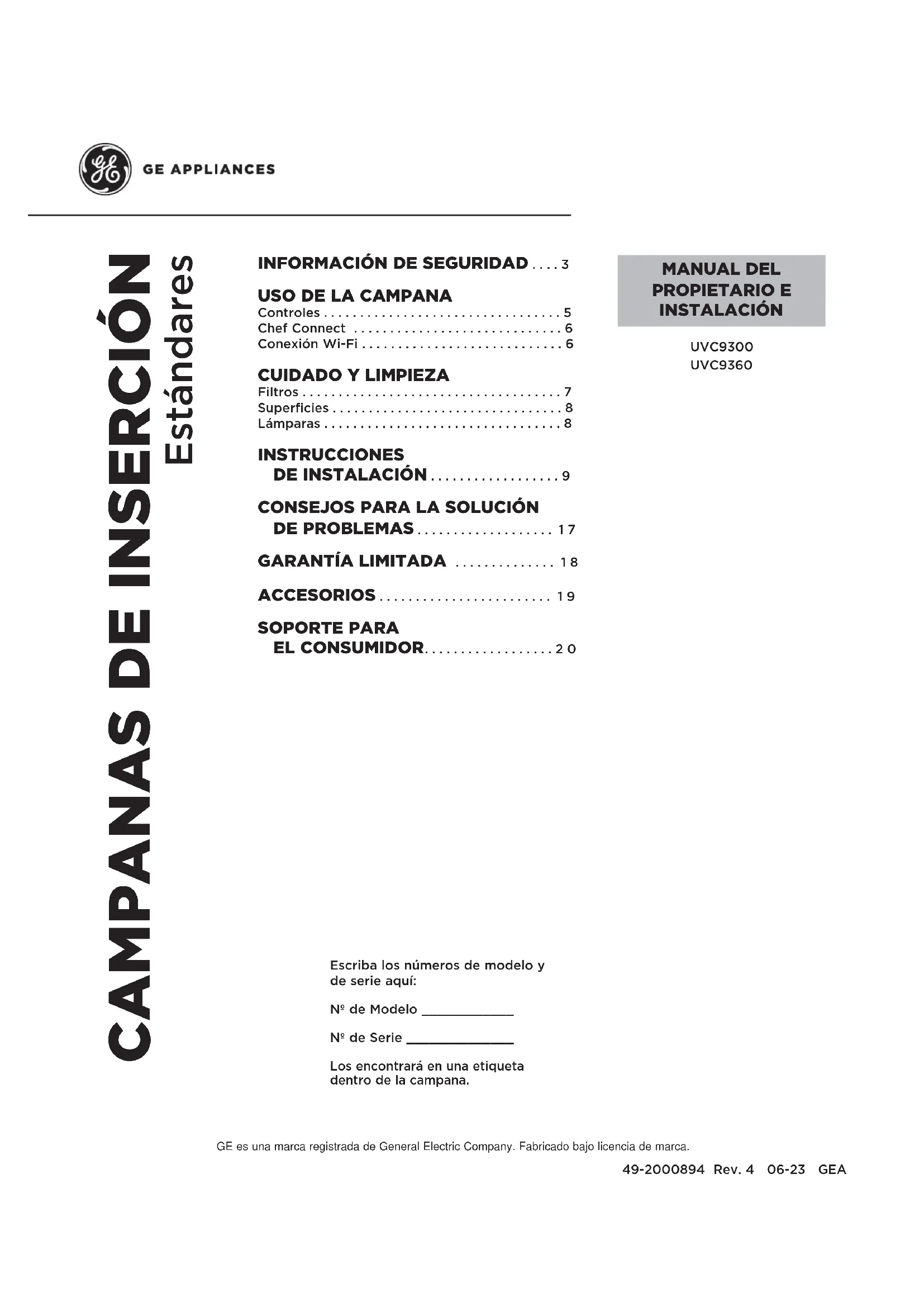 MANUAL DE USUARIO UVC9300SLSS GE