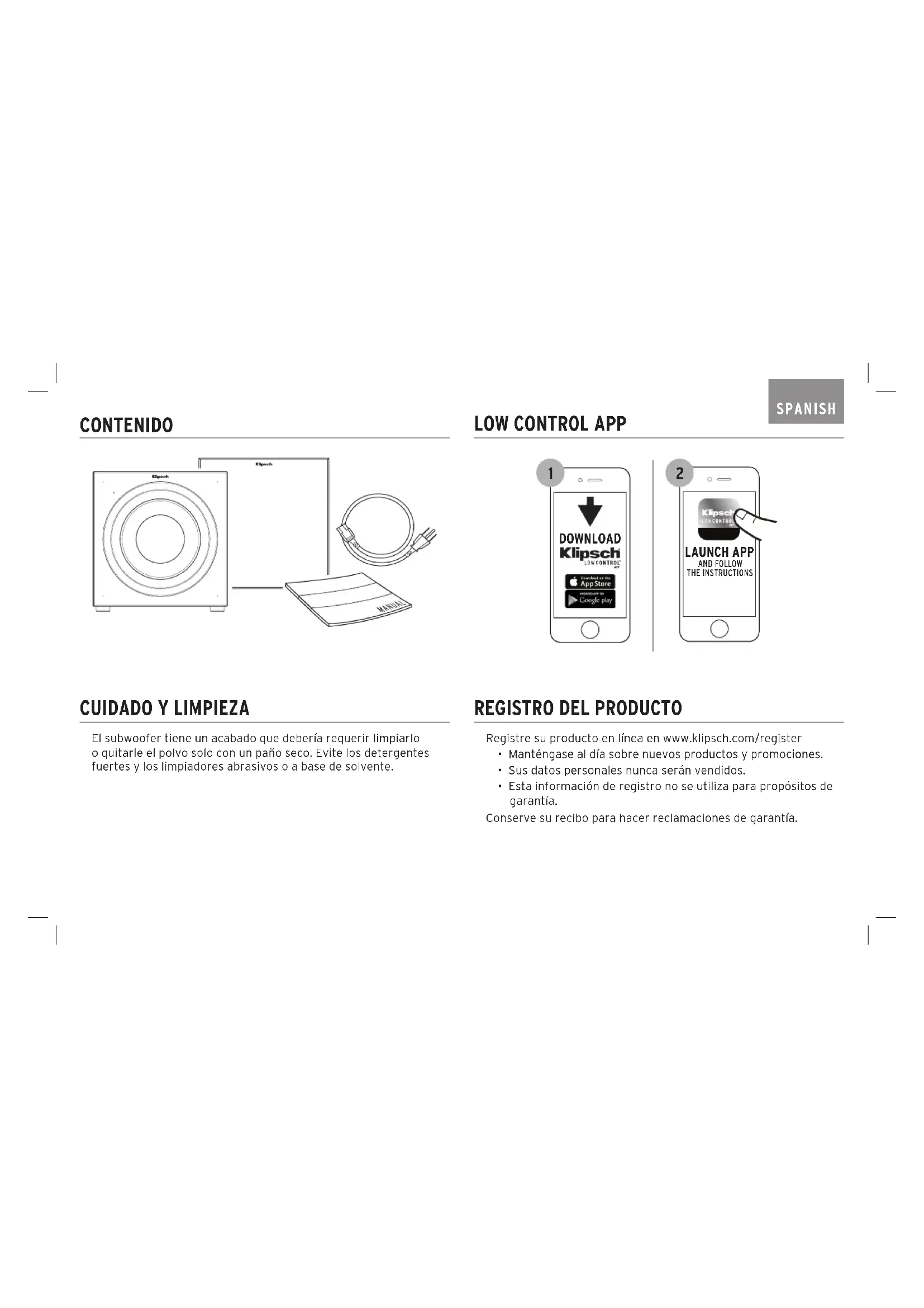 Registre su producto en línea en www.klipsch.com/register• Manténgase al día sobre nuevos productos y promociones.• Sus datos personales nunca serán vendidos.• Esta información de registro no se utiliza para propósitos de garantía.Conserve su recibo para hacer reclamaciones de garantía.