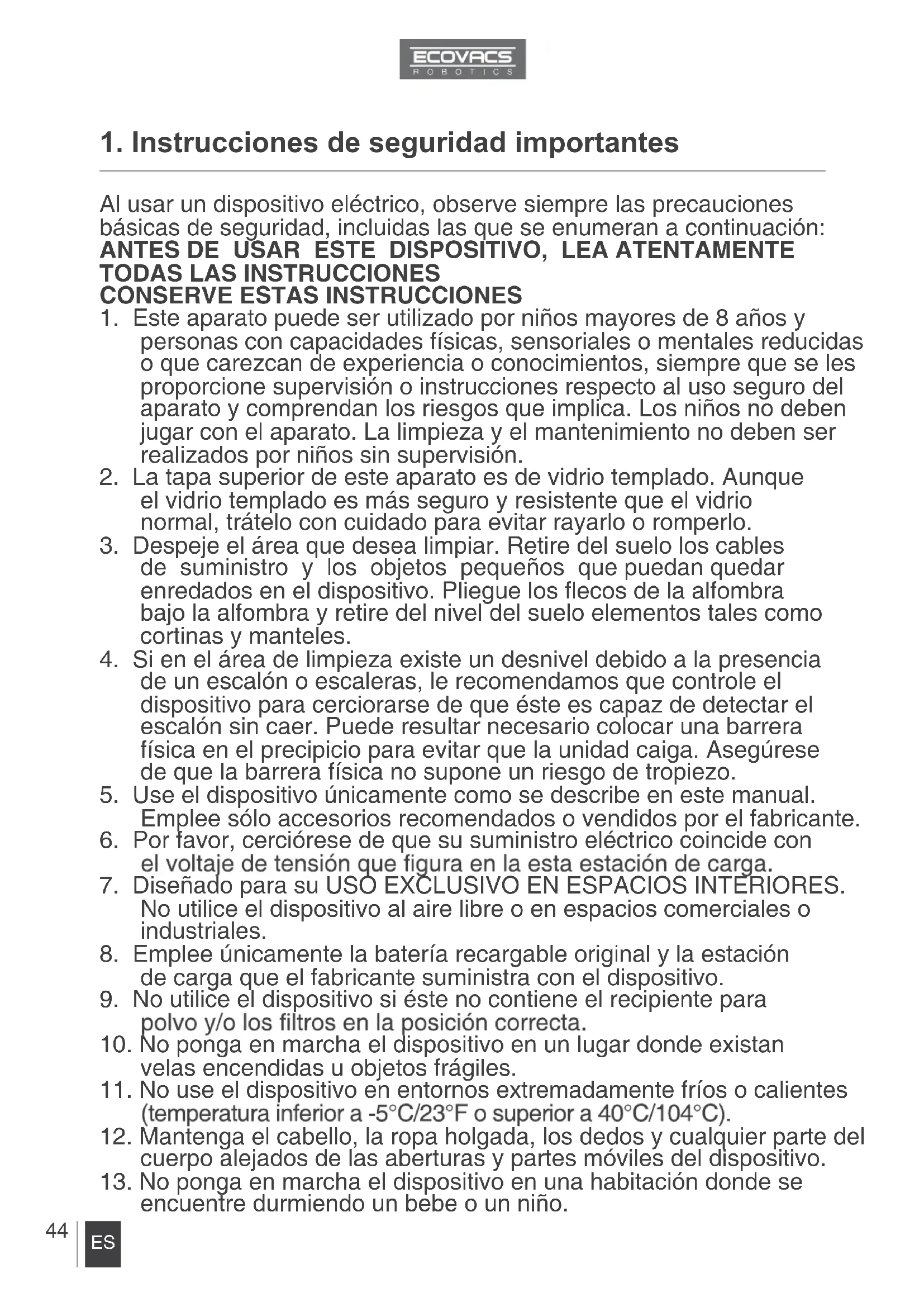 de usuario. ECOVACS ROBOTICS no asume ninguna responsabilidad por los daños o lesiones causados por un uso inadecuado.