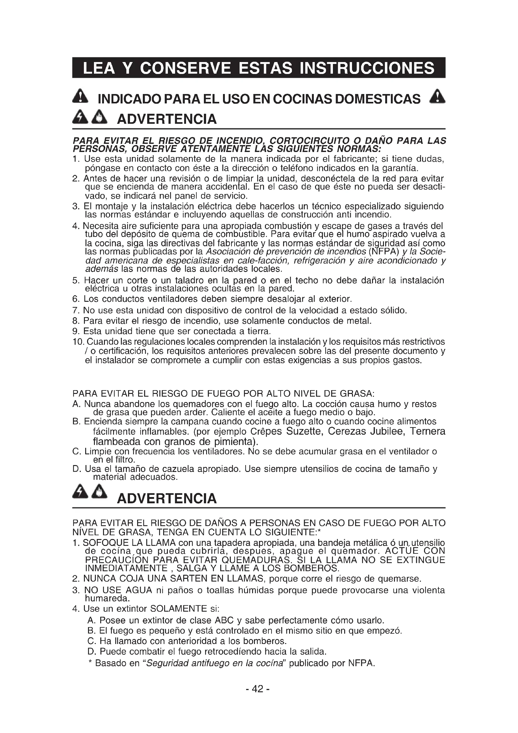 - Basado en “Seguridad antifuego en la cocína” publicado por NFPA. INDICADO PARA EL USO EN COCINAS DOMESTICAS