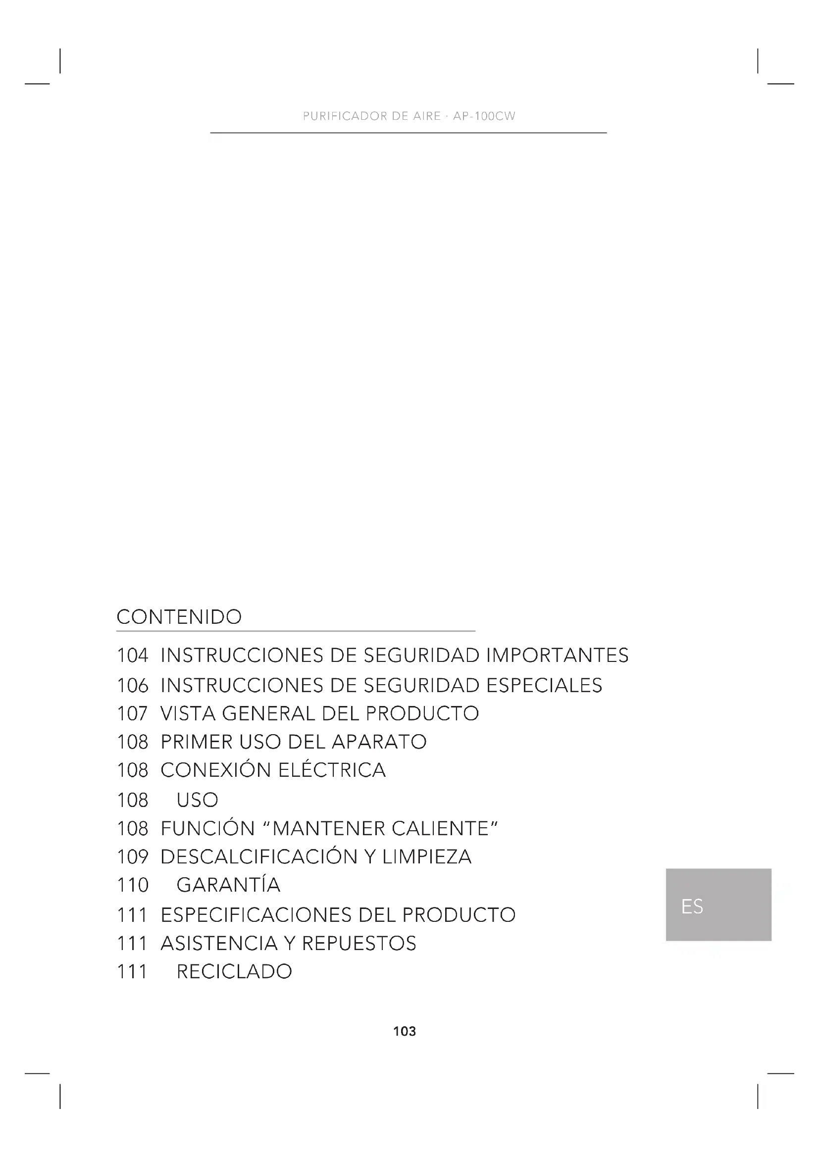 PURIFICADOR DE AIRE · AP-100CW