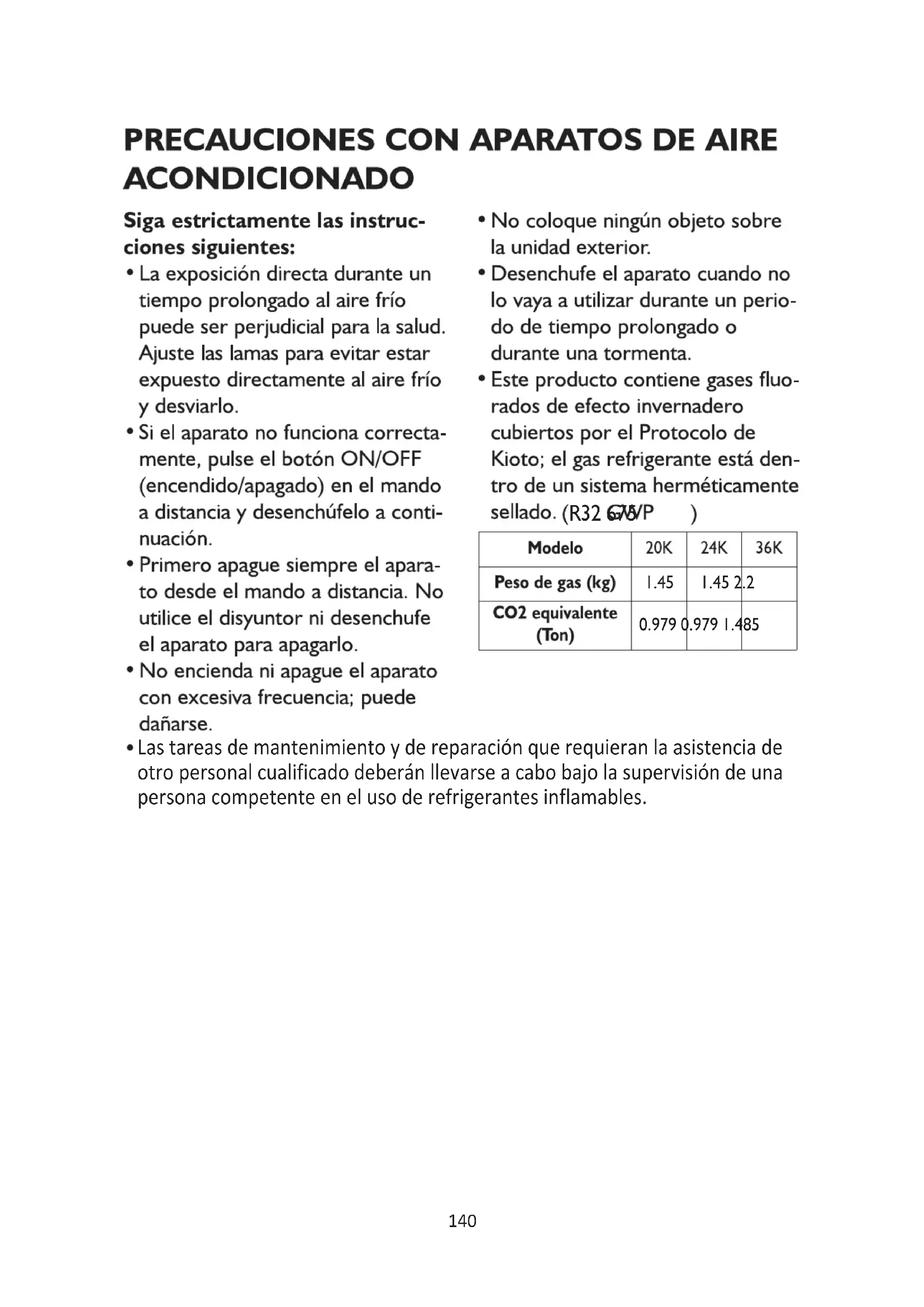 Las tareas de mantenimiento y de reparación que requieran la asistencia de otro personal cualificado deberán llevarse a cabo bajo la supervisión de una persona competente en el uso de refrigerantes inflamables.141