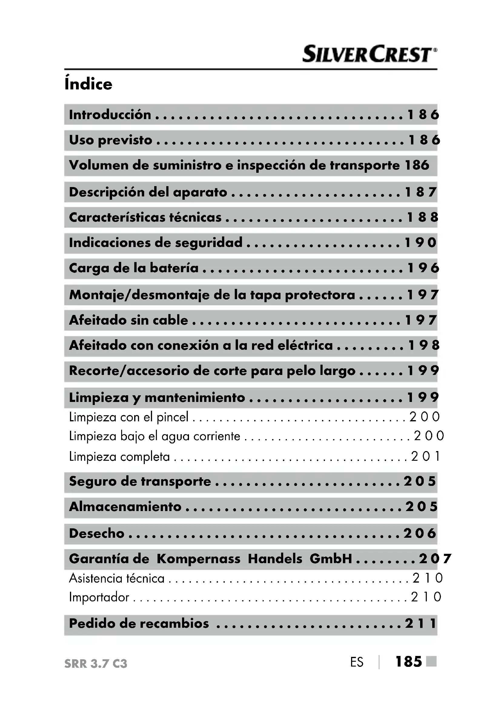 - 185 ■ SRR 3.7 C3 Índice Introducción p. 186