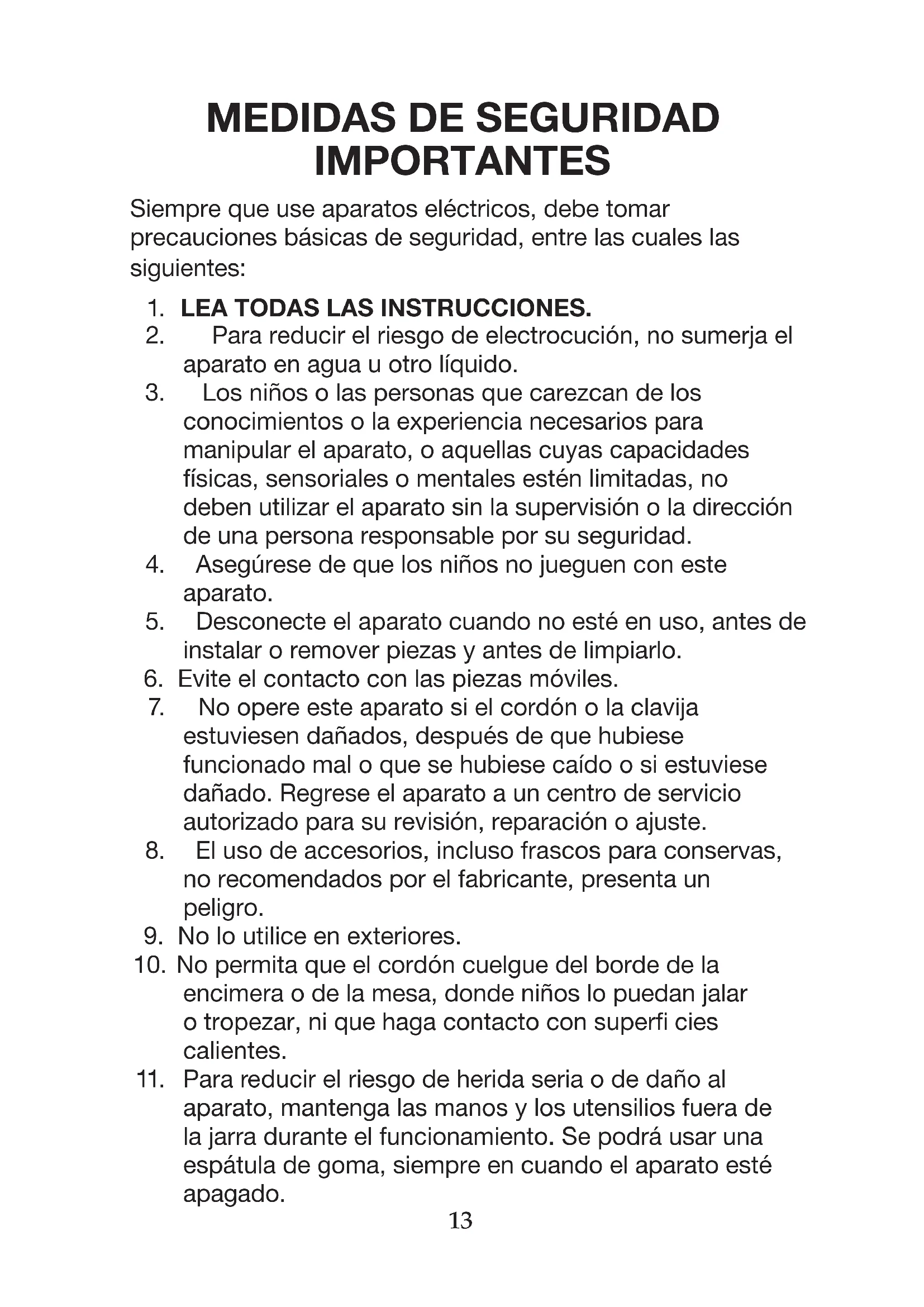 aparato, mantenga las manos y los utensilios fuera de la jarra durante el funcionamiento. Se podrá usar una espátula de goma, siempre en cuando el aparato esté apagado.14