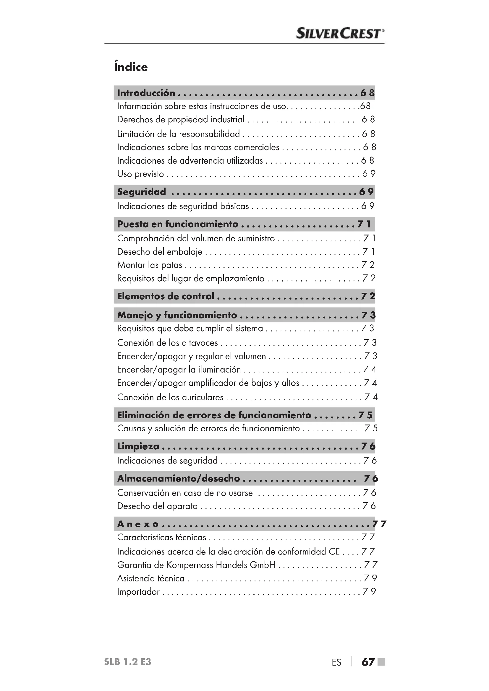 SLB 1.2 E3 - Vocero SILVERCREST - Manual de uso y guía de instrucciones gratis