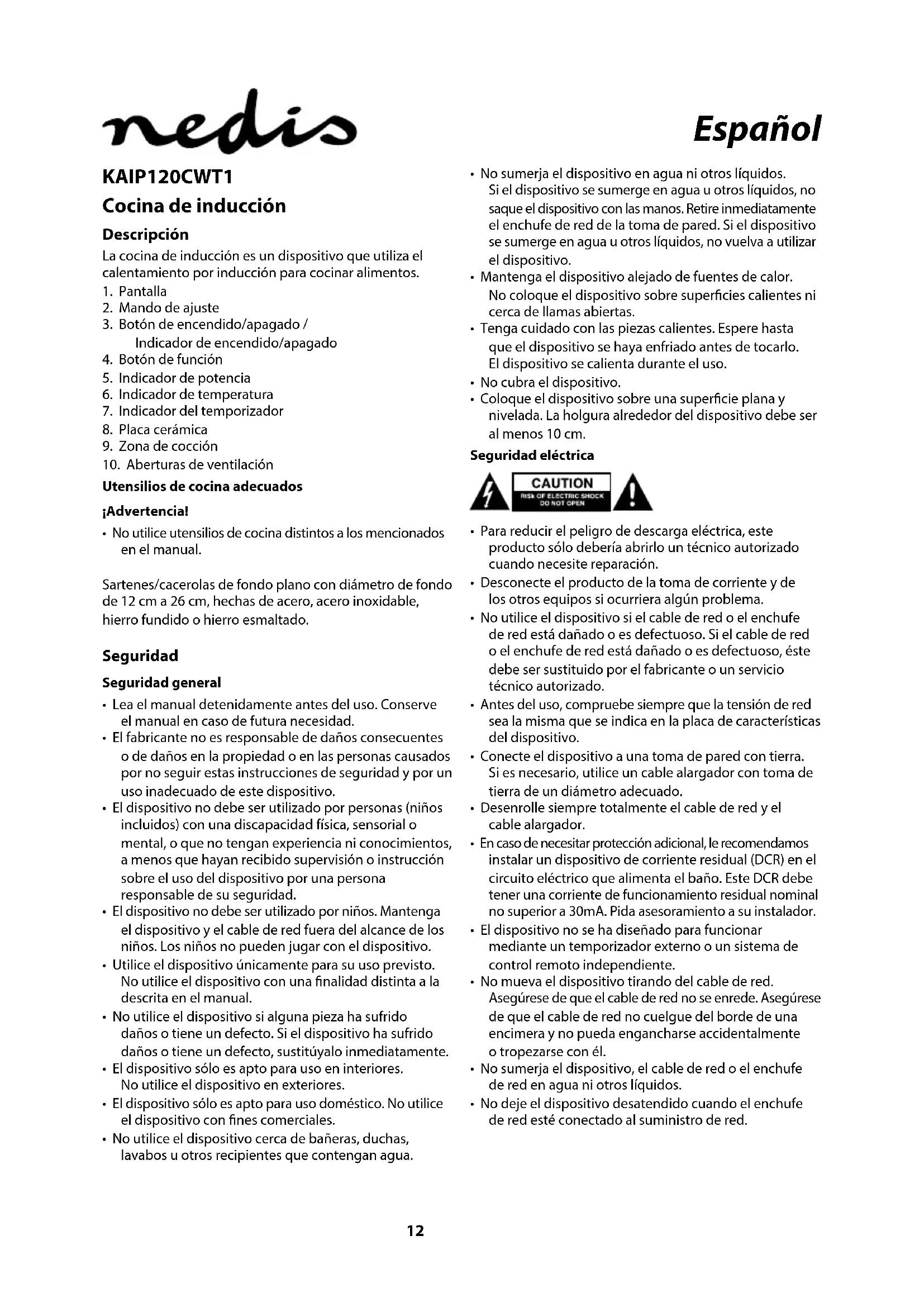 MANUAL DE USUARIO KAIP120CWT1 NEDIS