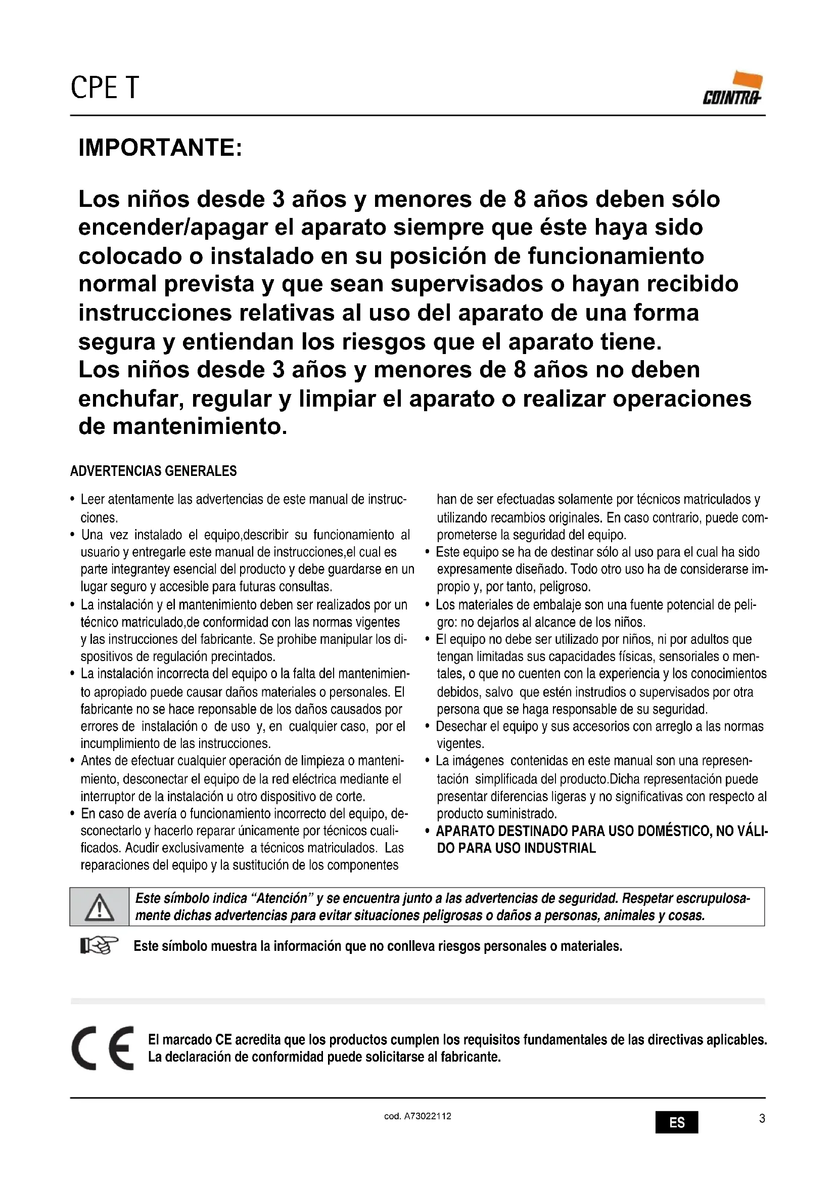 CPE T cod. A73022112• Leer atentamente las advertencias de este manual de instruc- ciones.