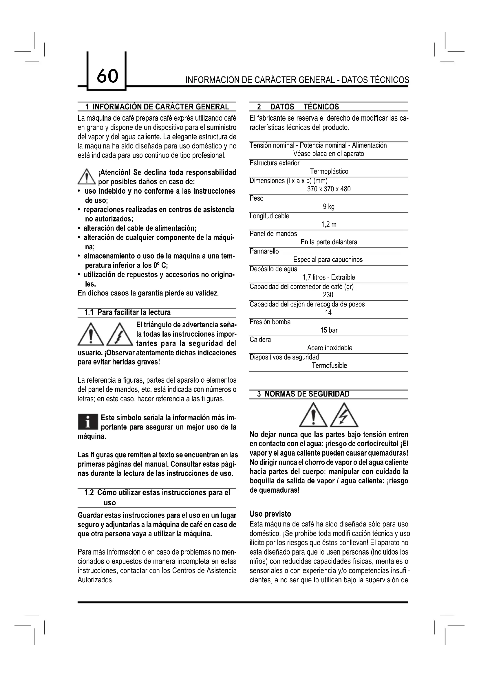 uso Guardar estas instrucciones para el uso en un lugar seguro y adjuntarlas a la máquina de café en caso de que otra persona vaya a utilizar la máquina. Para más información o en caso de problemas no men- cionados o expuestos de manera incompleta en estas instrucciones, contactar con los Centros de Asistencia Autorizados.