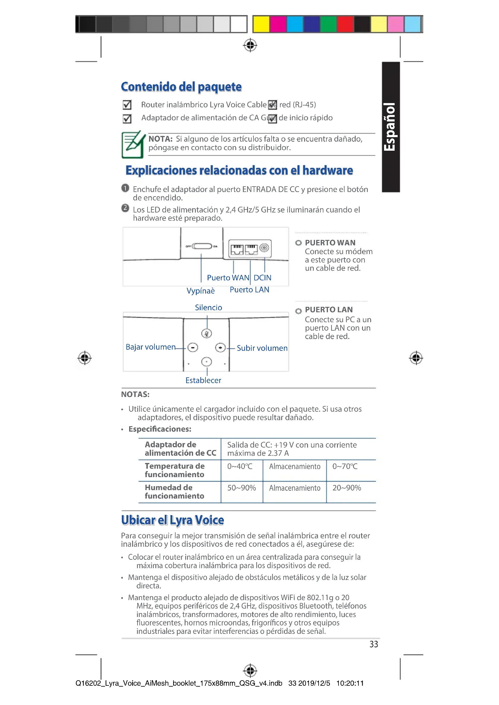 Descarga las instrucciones para tu Enrutador inalámbrico en formato PDF gratis! Encuentra tus instrucciones Lyra Voice - ASUS y toma tu dispositivo electrónico nuevamente en la mano. En esta página están publicados todos los documentos necesarios para el uso de su dispositivo. Lyra Voice de la marca ASUS.