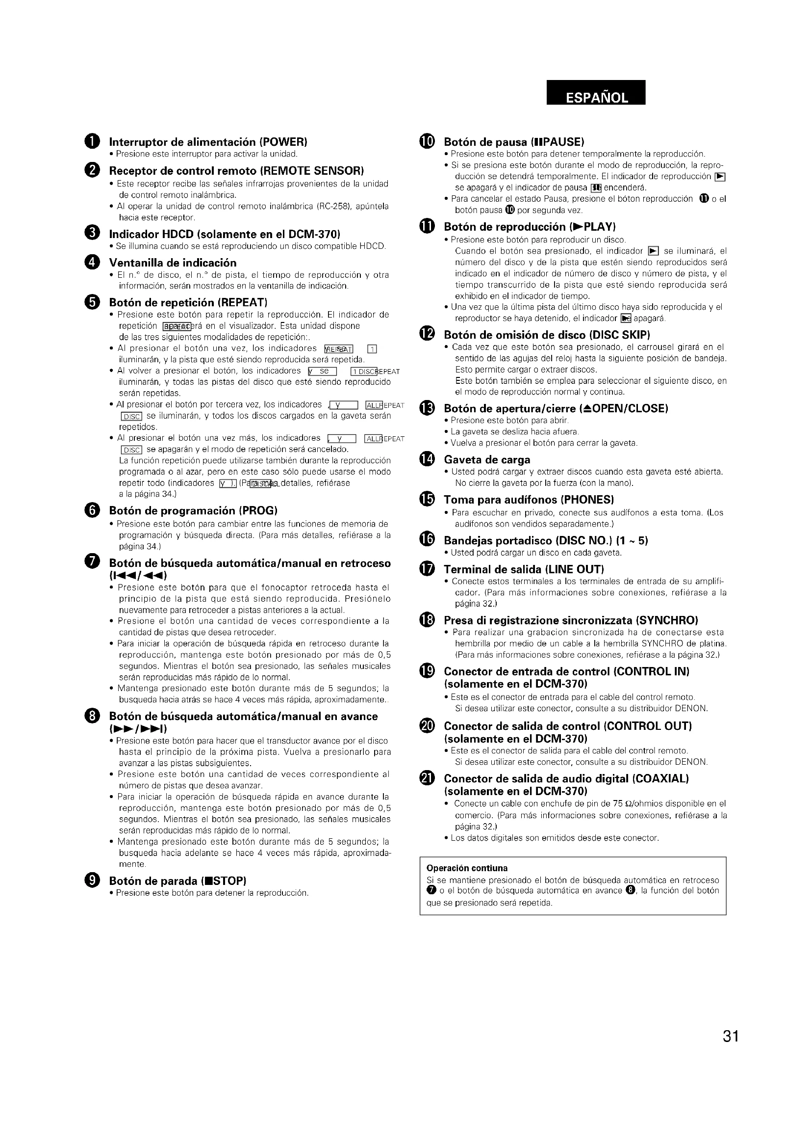 Descarga las instrucciones para tu Reproductor de CD en formato PDF gratis! Encuentra tus instrucciones DCM370 - DENON y toma tu dispositivo electrónico nuevamente en la mano. En esta página están publicados todos los documentos necesarios para el uso de su dispositivo. DCM370 de la marca DENON.