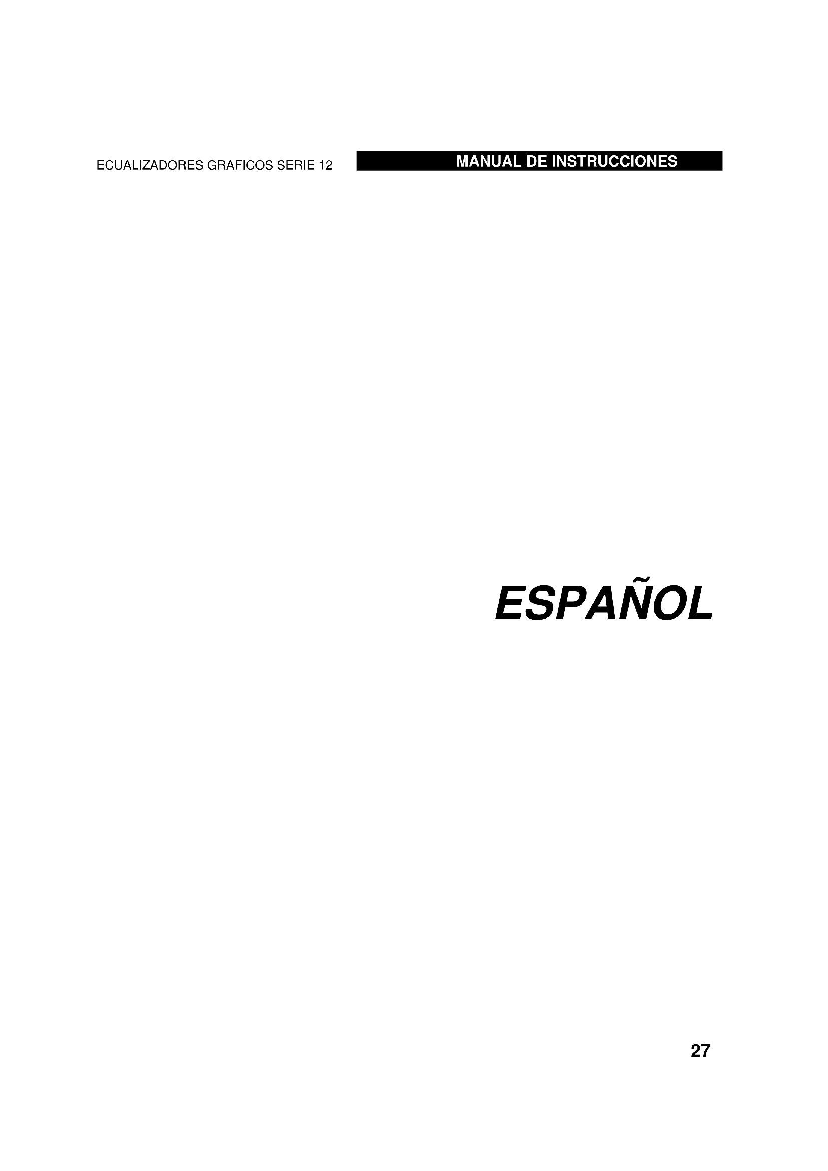 Felicidades por su compra de un ecualizador gráfico dbx. Todos los ecualizadores gráficos dbx son unidades multi-funcionales de alto rendimiento diseñadas para poner en manos de los profesionales toda la flexibilidad y potencialque estos requieren. Le recomendamos que dedique un momento a leer por completo este manual de instrucciones.En él podrá encontrar información que le ayudará en todos los pasos desde la configuración de su sistema hasta lasaplicaciones del EQ. Los ecualizadores de la Serie 12 incluyen las características siguientes:• Rango de corte/realce intercambiable entre ±6dB y ±15dB• Entradas y salidas balanceadas• Conectores XLR, TRS de 6,3 mm y regleta de bornes• Rango de ganancia de entrada -12dB/+12dB• Filtro de corte de graves de tipo Bessel de 40Hz y 18dB/octava• Posibilidad de desconexión de toma de tierra de chasis/señal• Transformador de fuente de alimentación interno• Bypass de desconexión por relé con retardo de dos segundos en el encendido INSPECCION Compruebe que dentro de la caja del ecualizador se encuentran los artículos siguientes:• Un ecualizador cuyo número de serie coincida con el marcado en el embalaje• Un cable de alimentación de CA• Manual de instrucciones• Tarjeta de registro• Cuatro tornillos y arandelas para el montaje en rackSi faltase cualquiera de estos artículos, póngase en contacto con el servicio de atención al usuario de dbx en el telé-fono que viene indicado en la contraportada de este manual. CONTROLES OPERATIVOS Paneles Frontales 1231 - ecualizador gráfico de canal dual de 31 bandas1215 - ecualizador gráfico de canal dual de 15 bandas