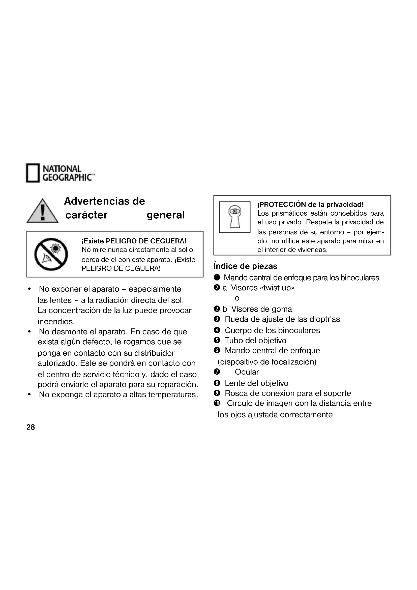 MANUAL DE USUARIO Compact 10x25 National Geographic