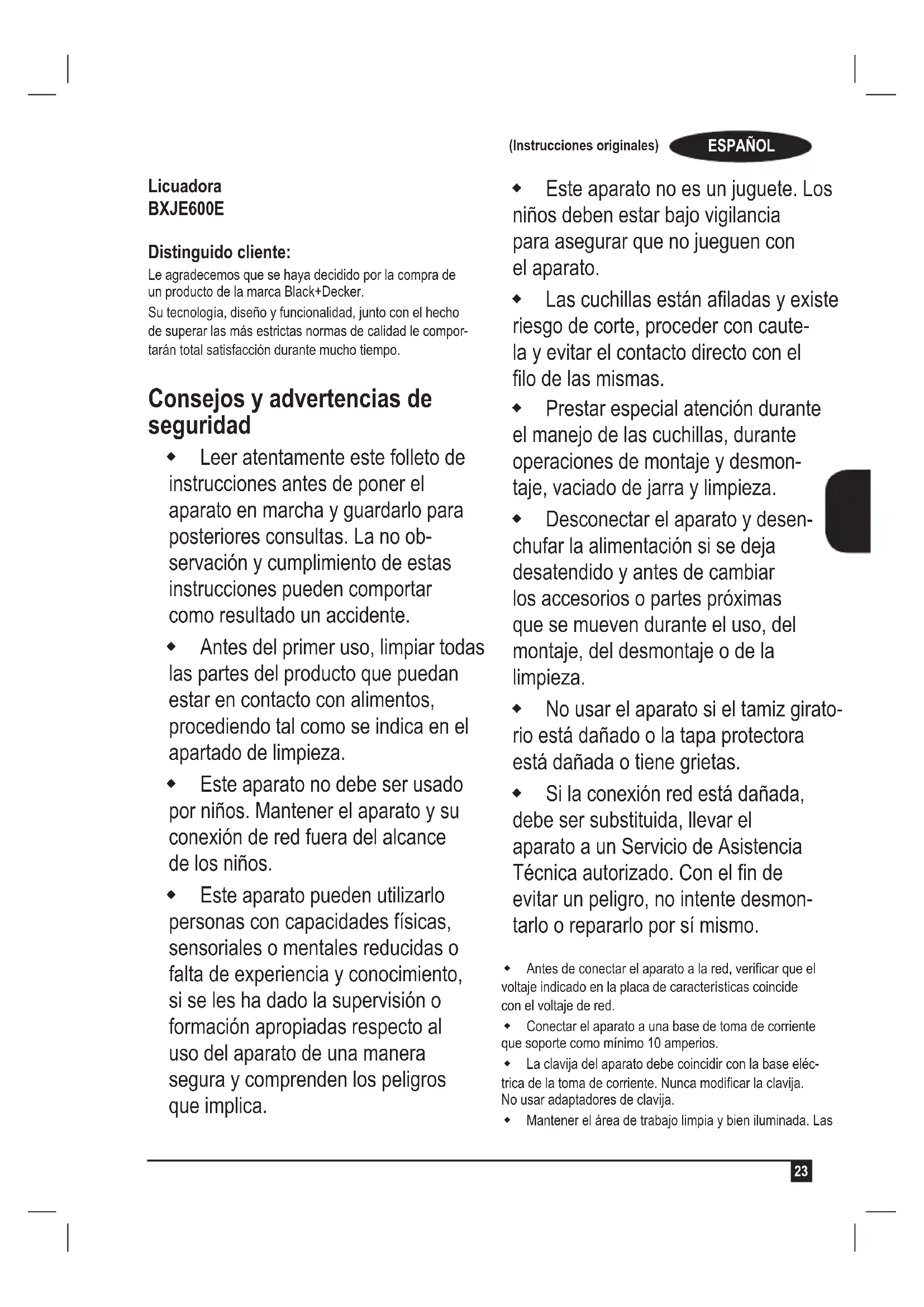 MANUAL DE USUARIO BXJE600E BLACK & DECKER