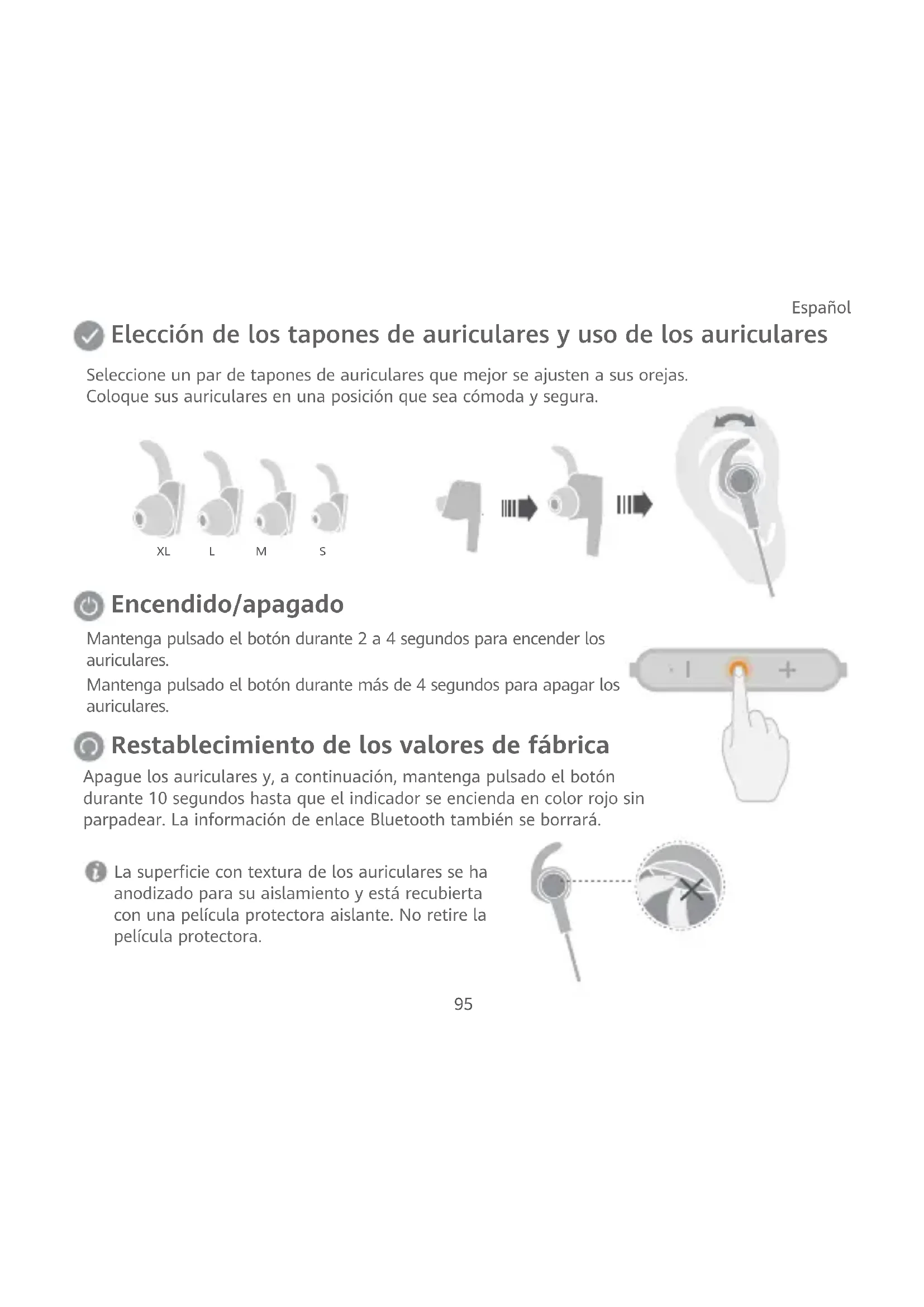 2. Mantenga pulsado el botón ubicado en los auriculares durante aproximadamente 4 segundos