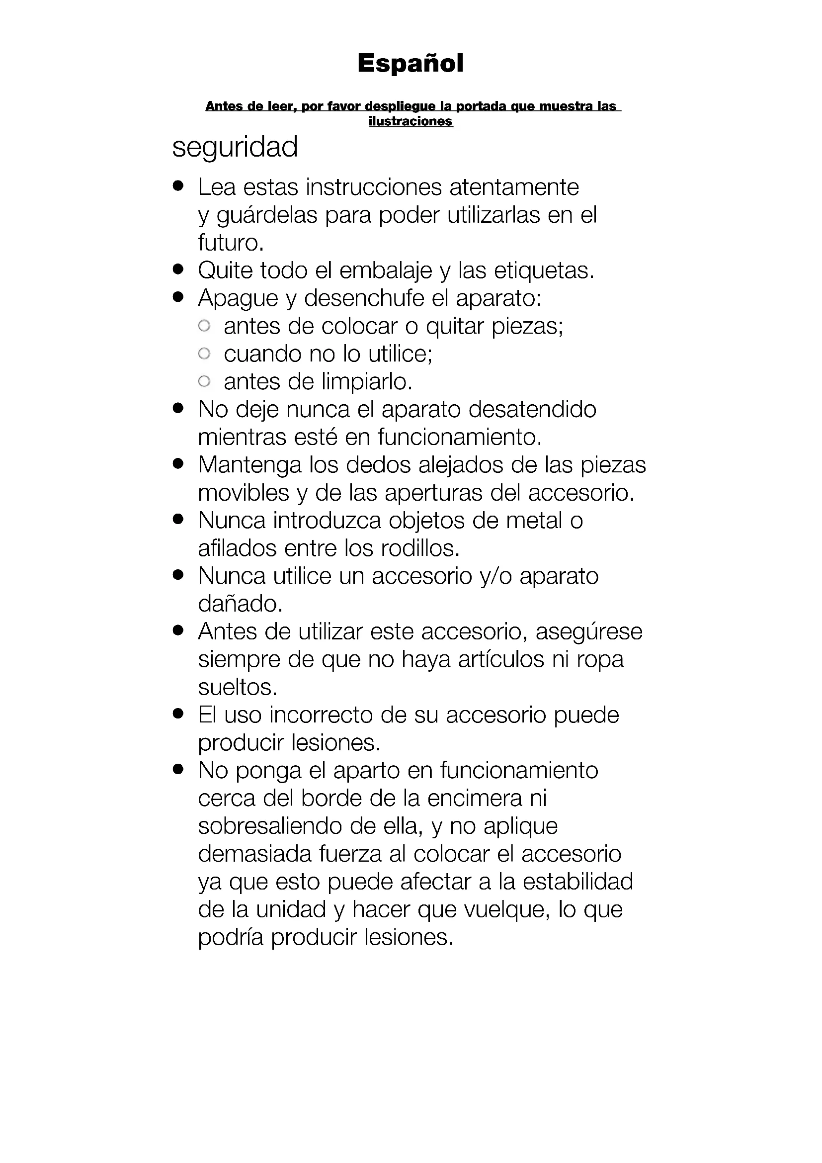 Antes de utilizar este accesorio, asegúrese siempre de que no haya artículos ni ropa sueltos.