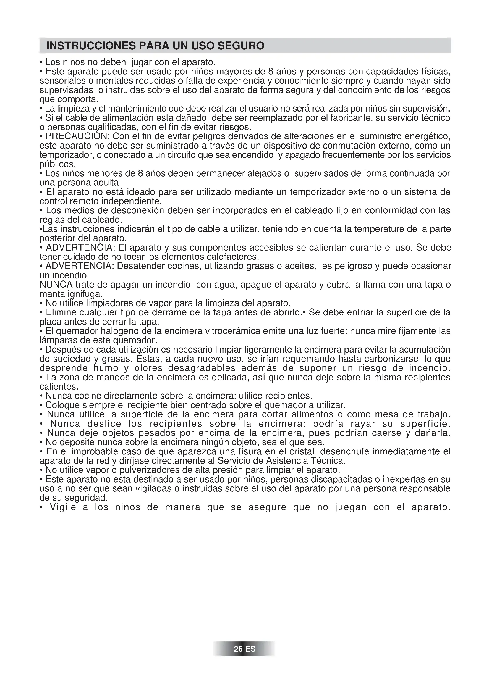 - Este aparato no esta destinado a ser usado por niños, personas discapacitadas o inexpertas en su uso a no ser que sean vigiladas o instruidas sobre el uso del aparato por una persona responsable de su seguridad.