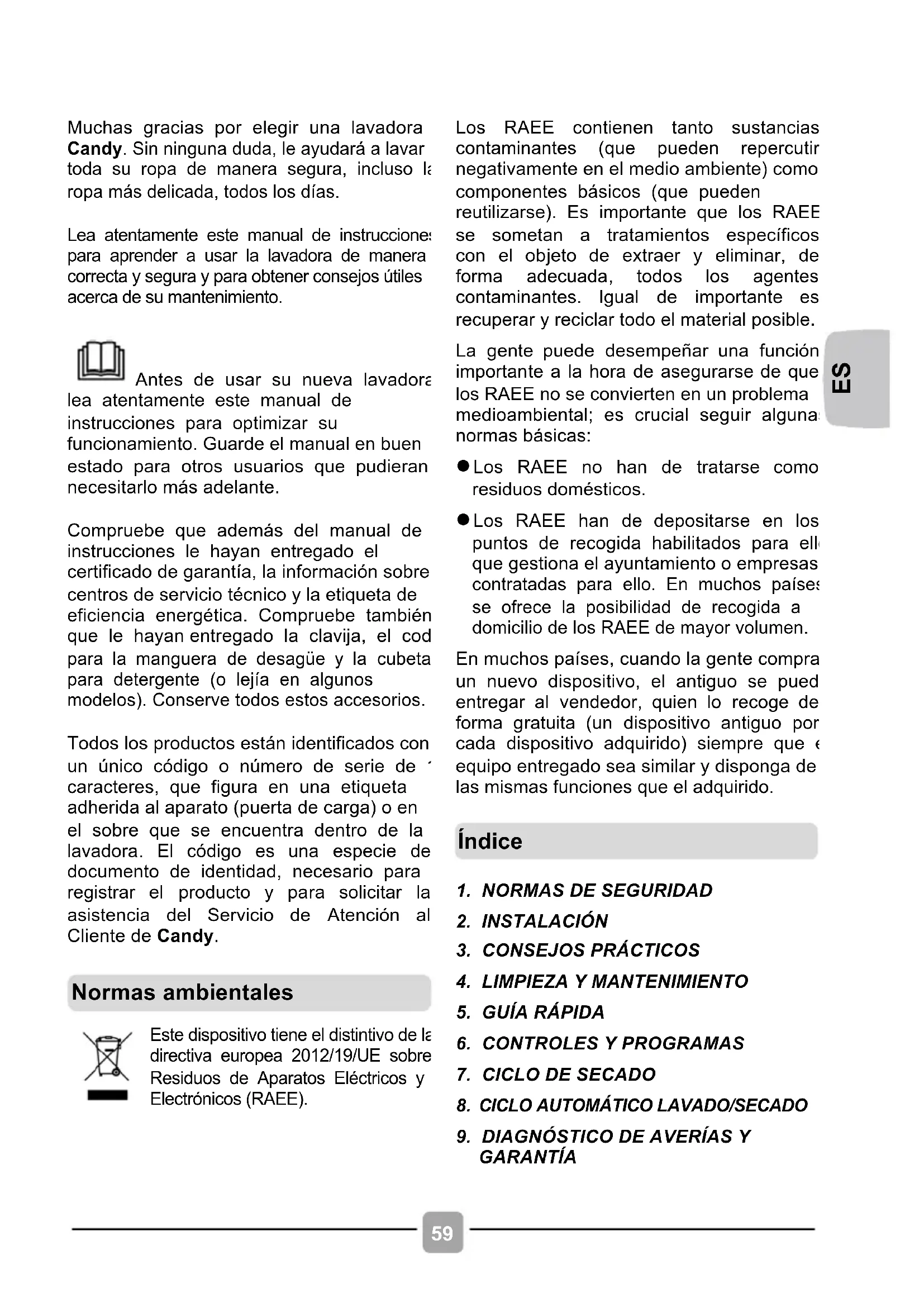 Muchas gracias por elegir una lavadora Candy. Sin ninguna duda, le ayudará a lavar toda su ropa de manera segura, incluso la ropa más delicada, todos los días.
