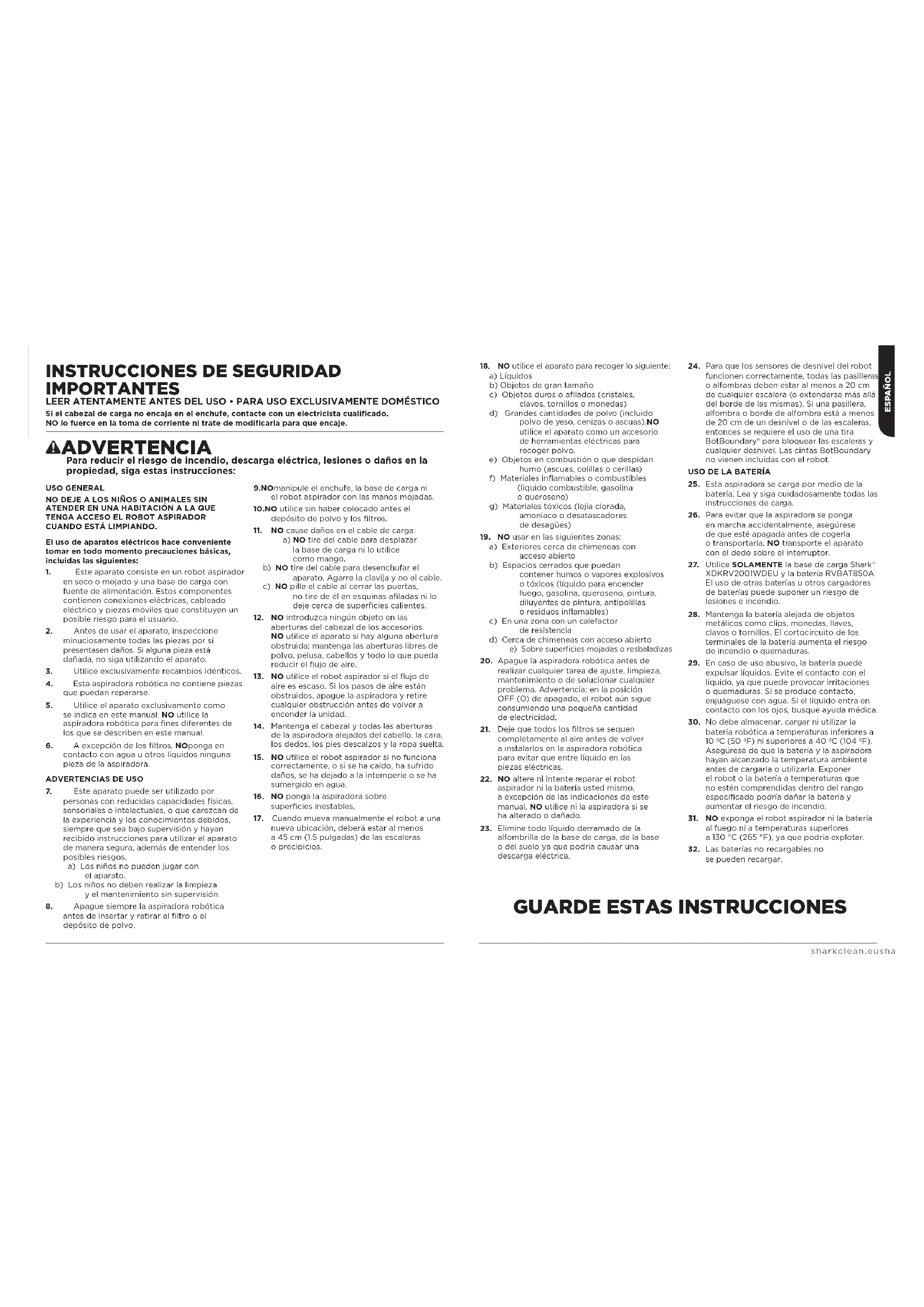 Ai Robot RV2001 - Robot aspirador SHARK - Manual de uso y guía de instrucciones gratis
