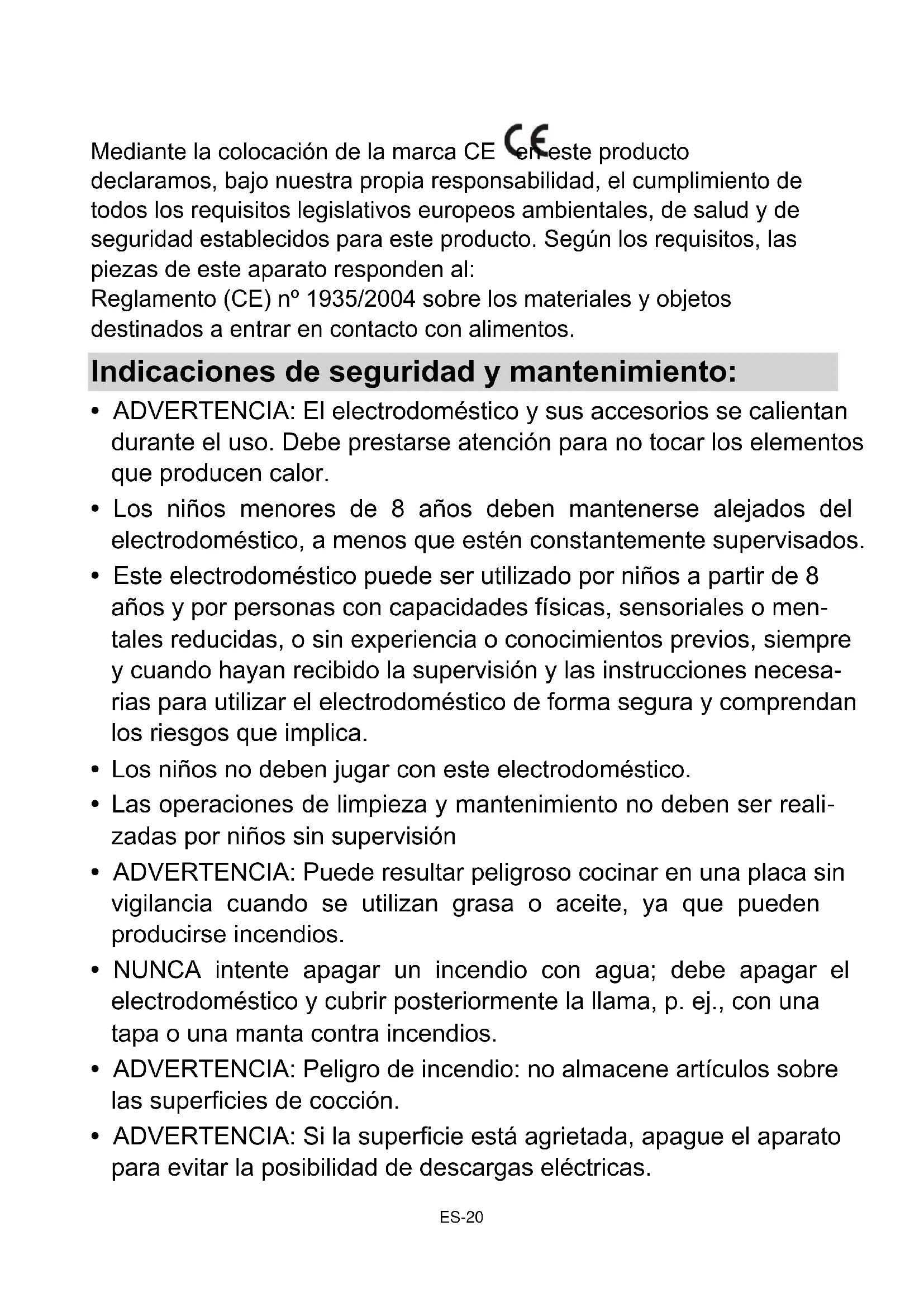- ADVERTENCIA: Puede resultar peligroso cocinar en una placa sin vigilancia cuando se utilizan grasa o aceite, ya que pueden producirse incendios.
