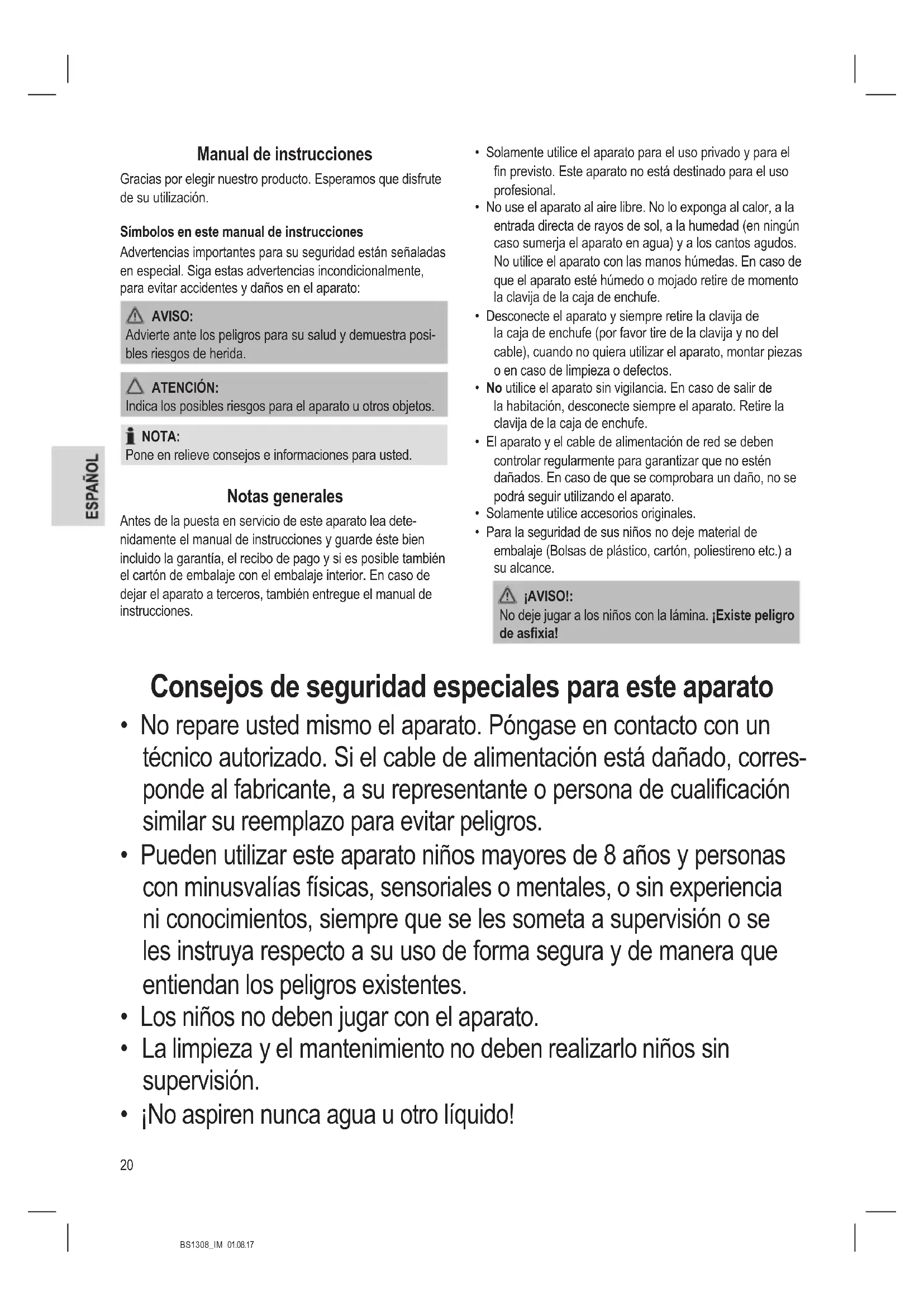 - ¡No aspiren nunca agua u otro líquido!21 BS1308_IM 01.08.17