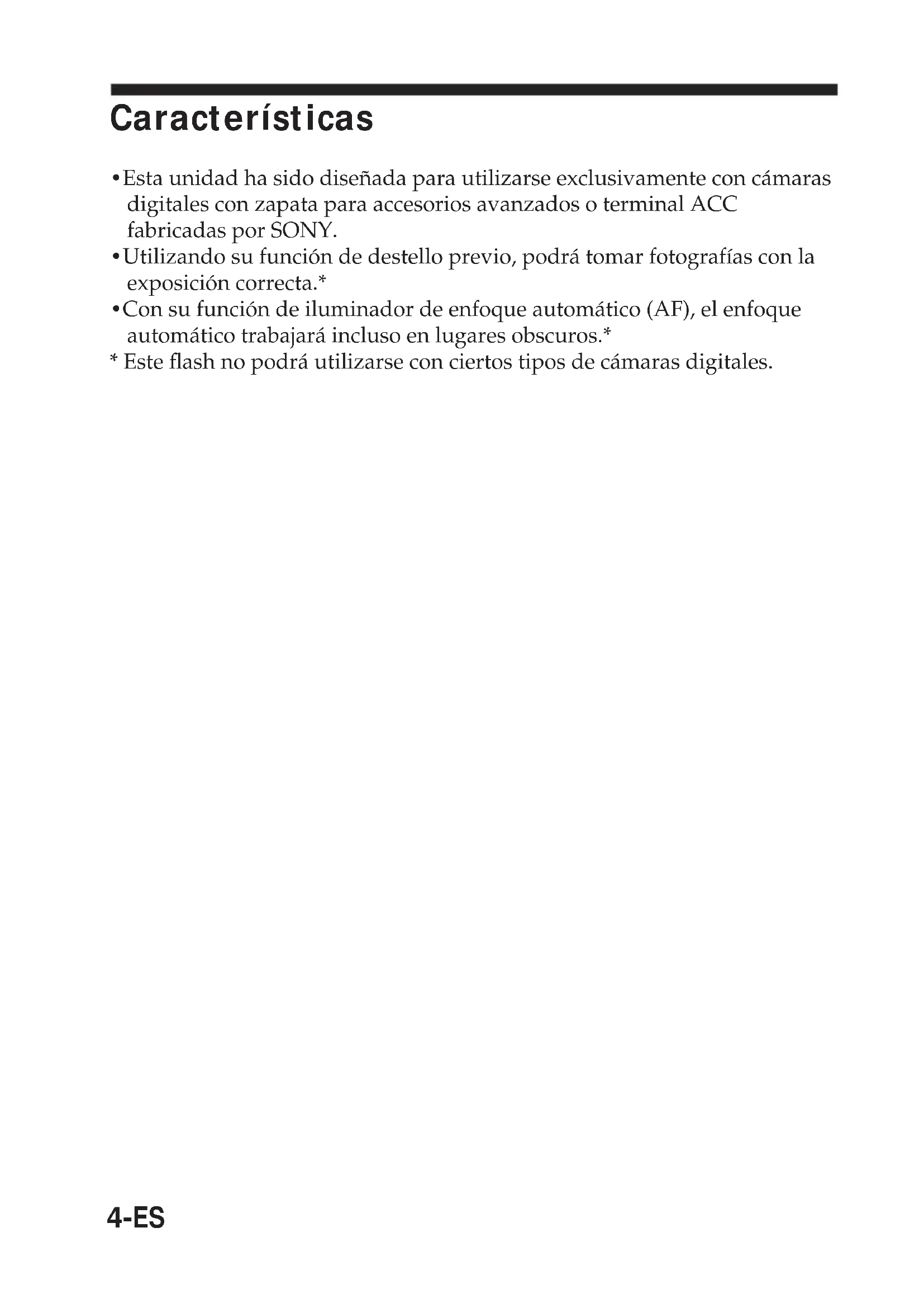 - Esta unidad ha sido diseñada para utilizarse exclusivamente con cámaras digitales con zapata para accesorios avanzados o terminal ACC fabricadas por SONY.