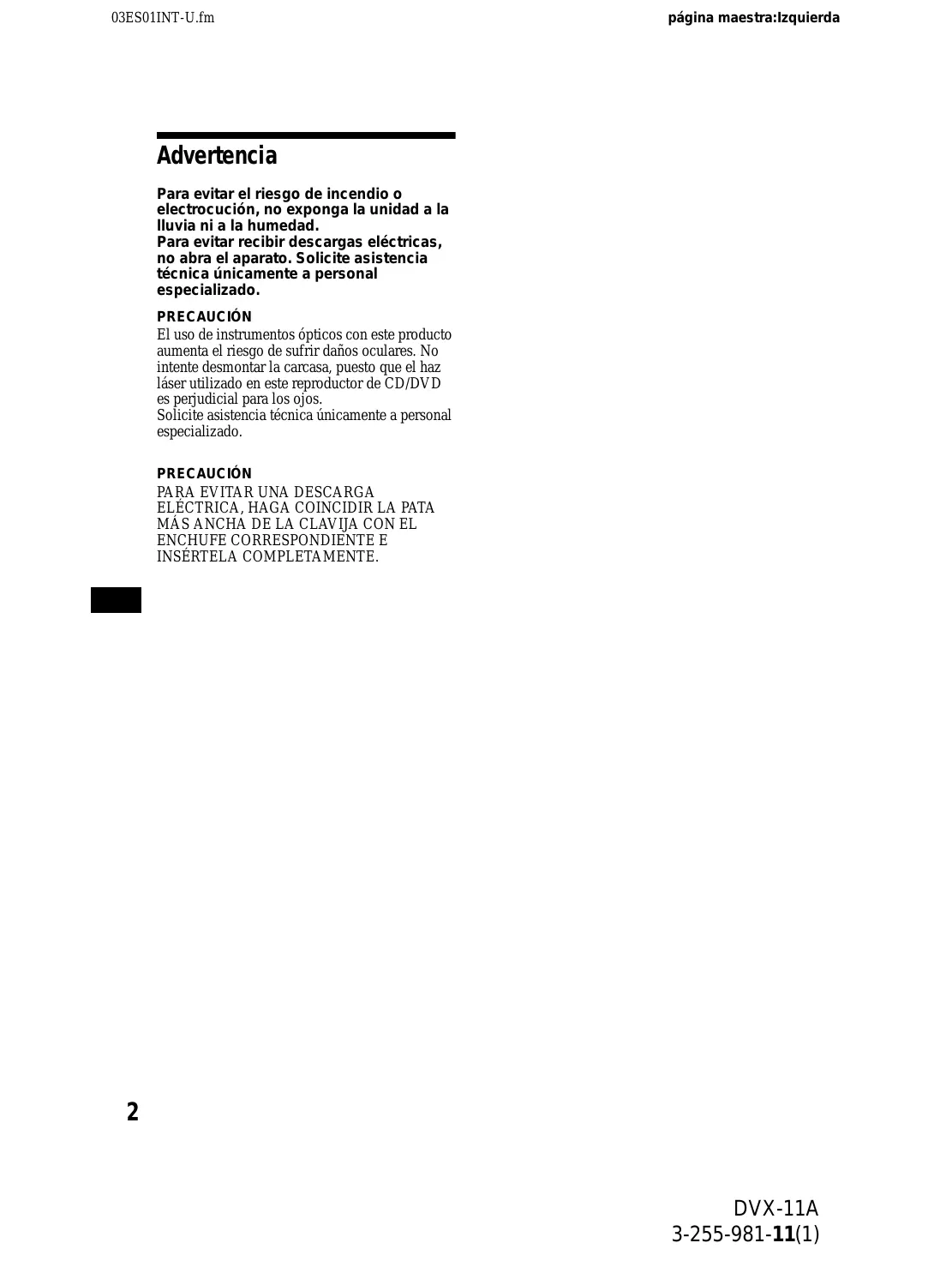 MANUAL DE USUARIO DVX-11A SONY