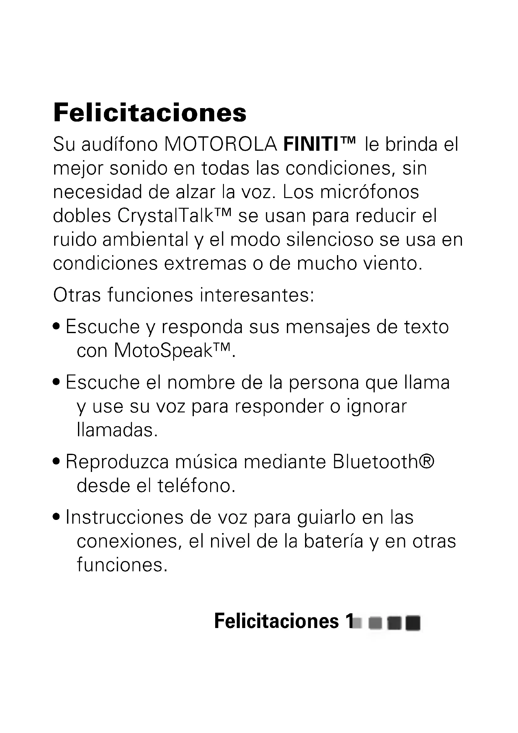 - Instrucciones de voz para guiarlo en las conexiones, el nivel de la batería y en otras funciones.Felicitaciones2