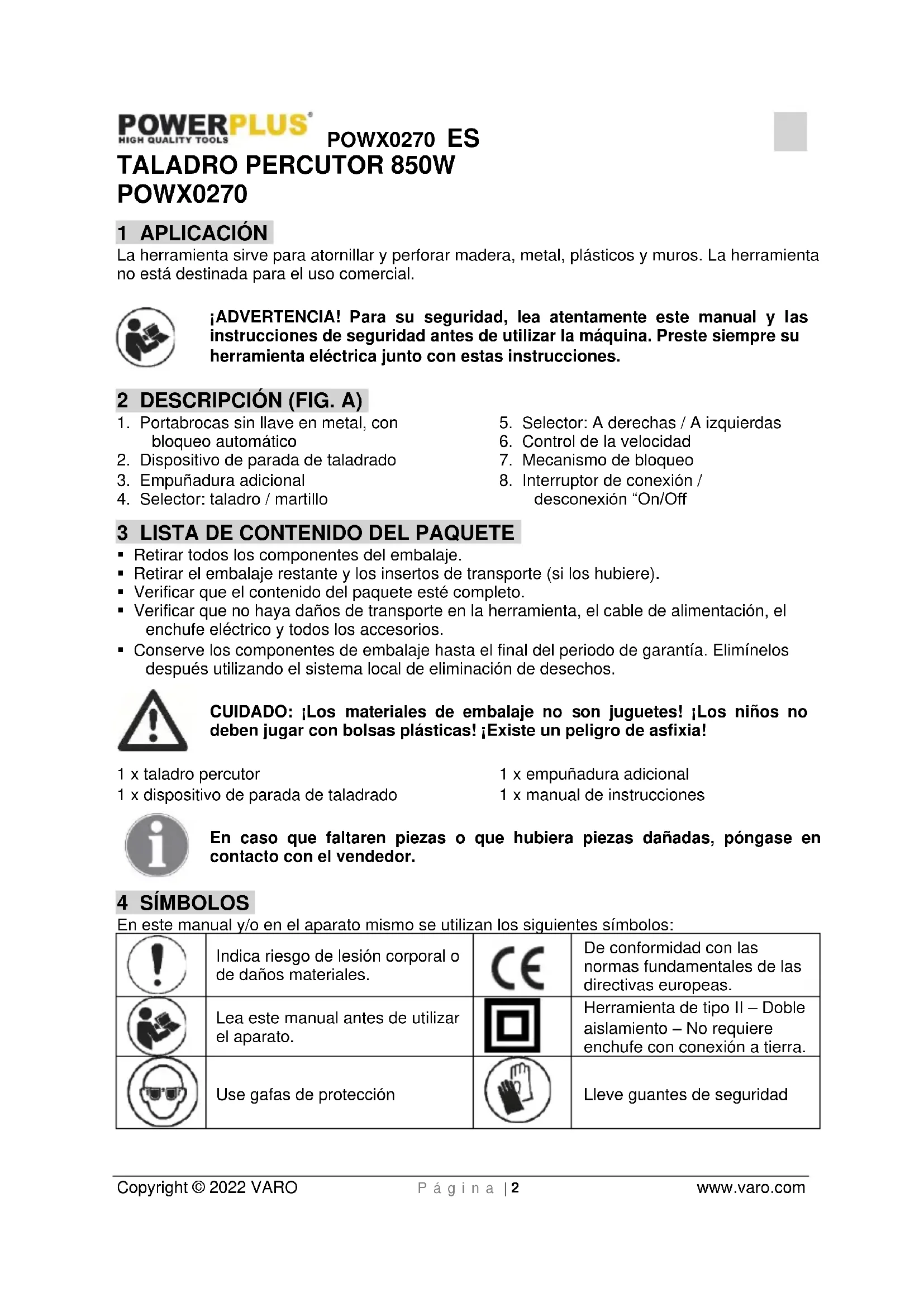 - Debe conservar el recibo de compra como prueba de la fecha de compra.POWX0270 ES Copyright © 2022 VARO P á g i n a | 8 www.varo.com